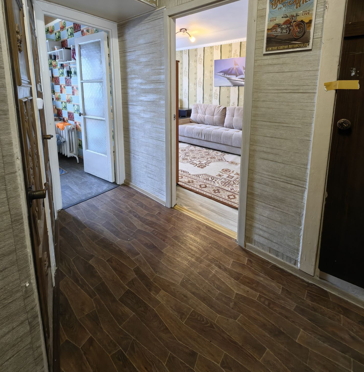 В квартире установлены стеклопакеты, поменяна входная дверь, на полу-линолеум. В комнатах сделан косметический ремонт.