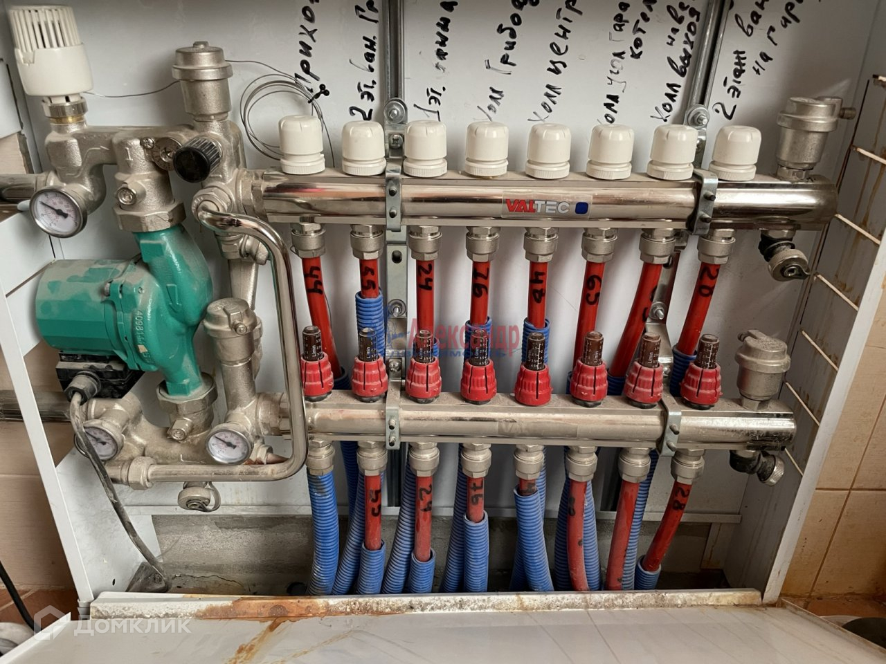 Отопление дома осуществляется за счет системы водяного теплого пола на первом этаже, и радиаторов на втором. Все это функционирует за счет двухконтурного газового котла. Так же с помощью этого же котла дом снабжается горячей водой. Холодная вода - центральный водопровод. Электричество - 15 кв.т. В каждой из комнат предусмотрена система вентиляции.