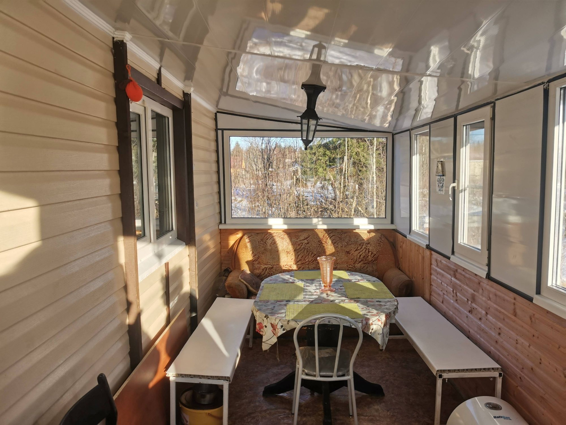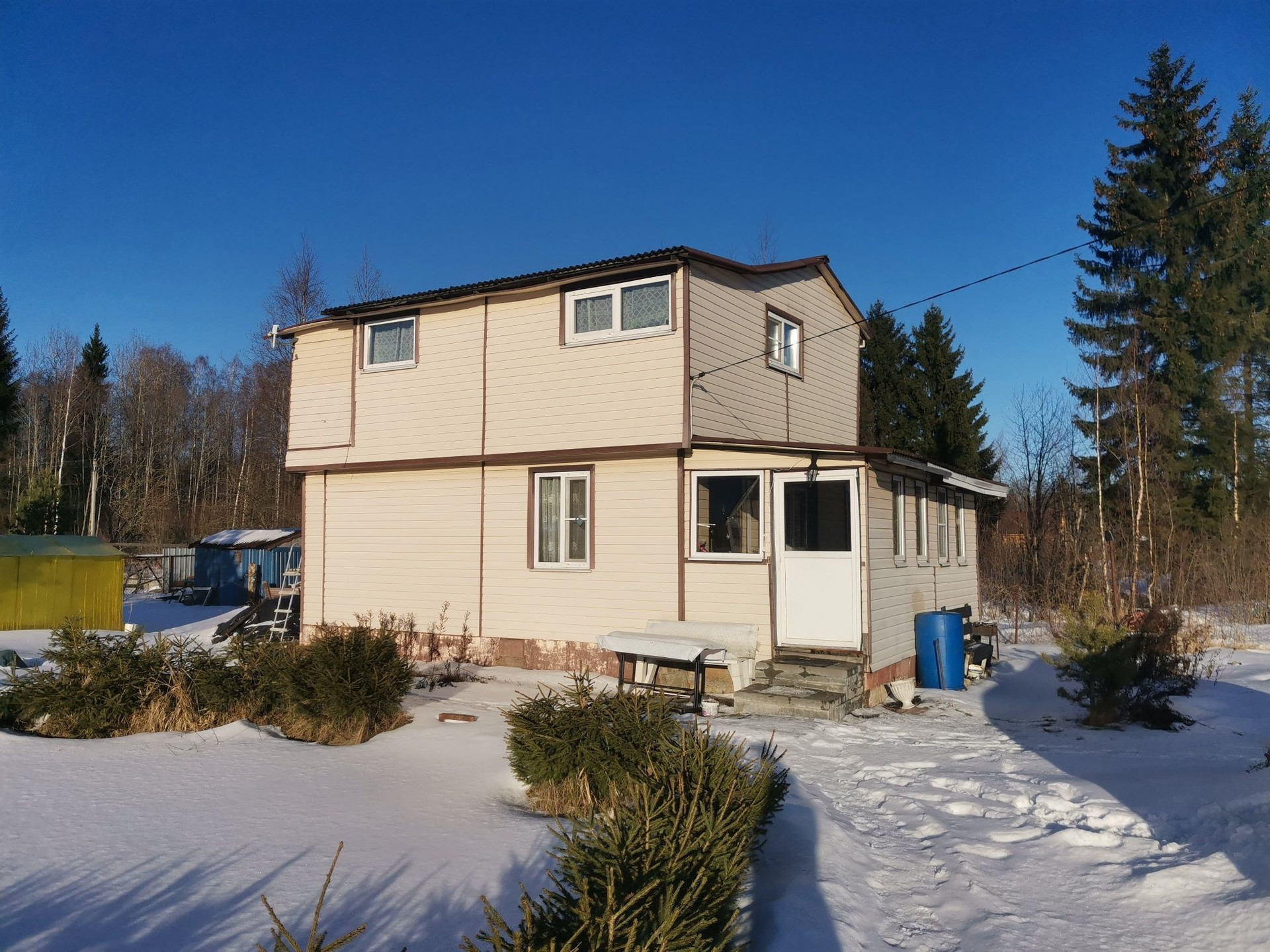 В продаже зимний, тёплый, просторный дом, общей площадью 83м2. Комфортная планировка. Полностью подходит для круглогодичного проживания. Оформлен как жилой. Возможна прописка. В доме есть все необходимые каммуникации: электричество 6кВт. (возможно подключение 15кВт.), центральный, зимний водопровод. Установлен газовый баллон (50л.) для плиты. По всему дому установлены батареи, работающие от Эл. котла. Также можно отапливать инфракрасными обогревателями, они расположены по дому. В доме очень тепло. Внутри обшит вагонкой. Уютная кухня-гостинная. Комфортная лестница на 2 этаж. Большая, утепленная лоджия, с видом на лес. Просторная, панорамная веранда. Все окна в доме - стеклопакеты. Дом каркасного типа. Фундамент блочный.