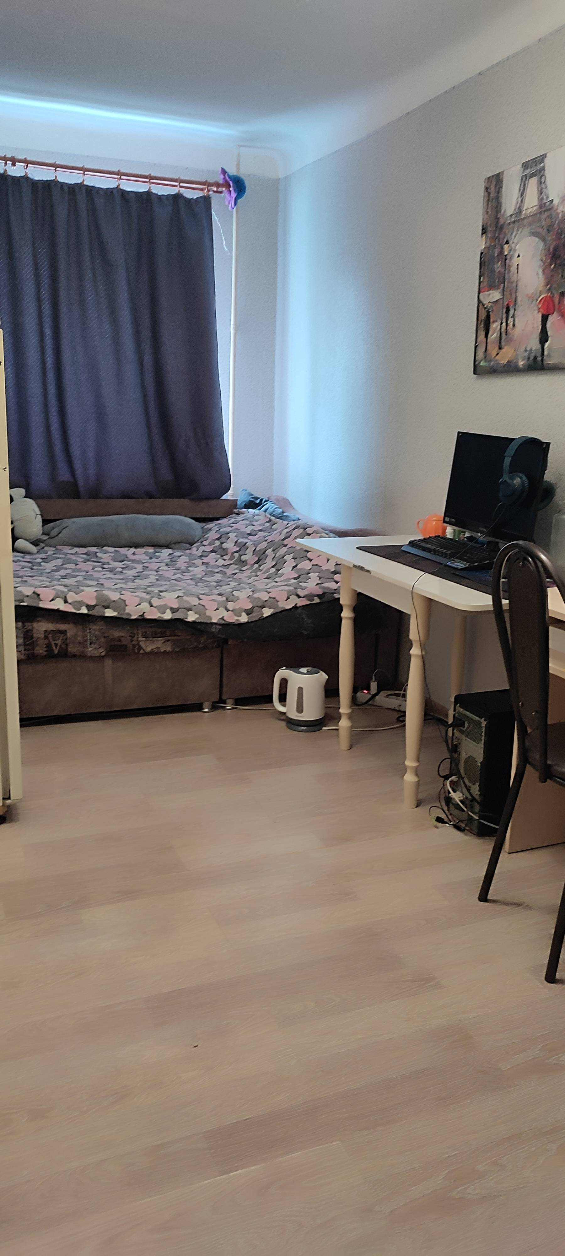 Комната прямоугольной формы , а хорошем состоянии. Установлено окно ПВХ, на полу ламинат.