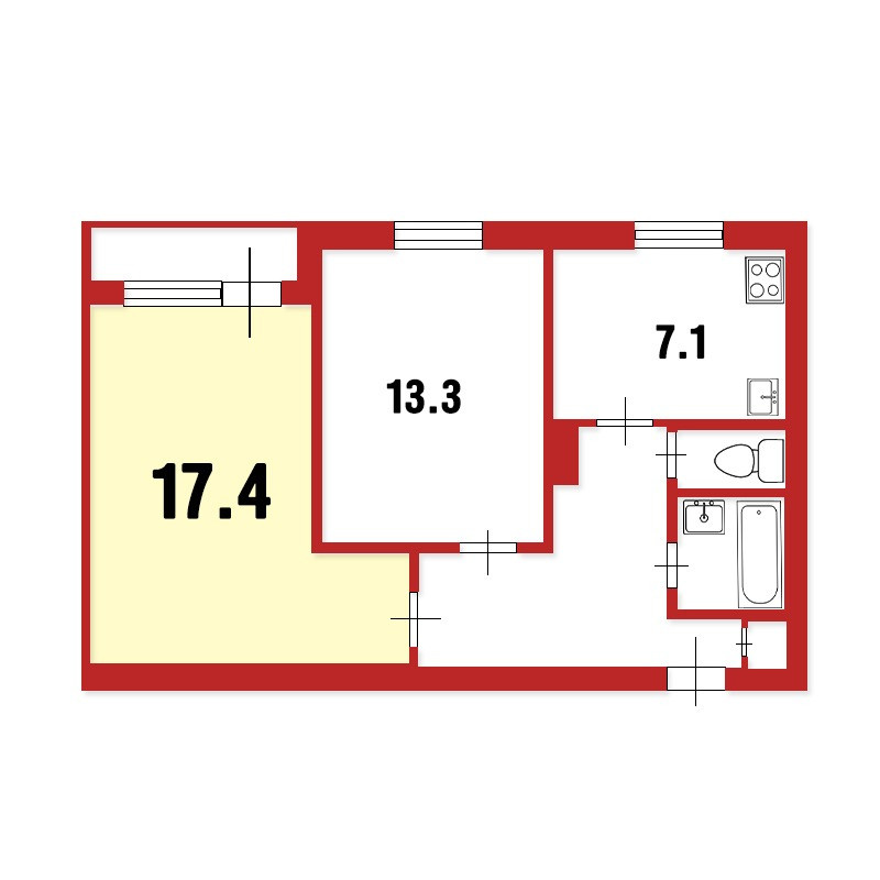 Жилая площадь 17.4 м2
