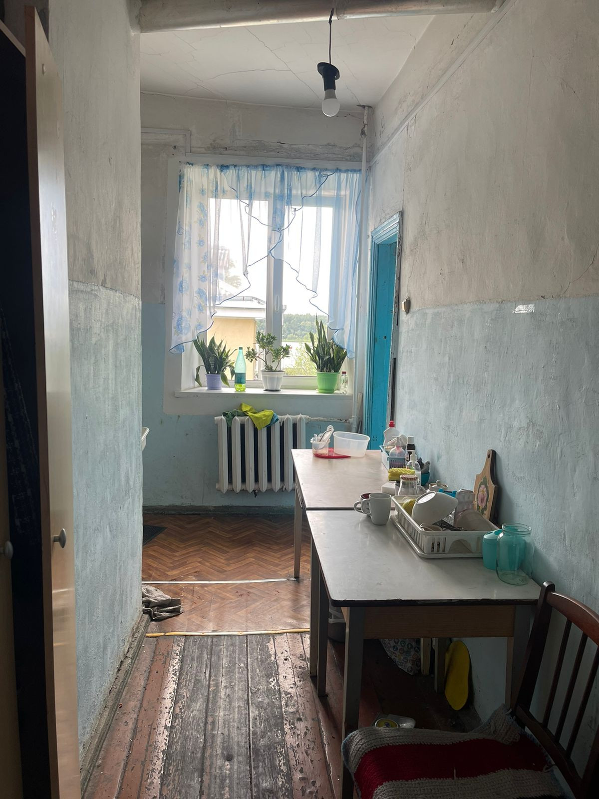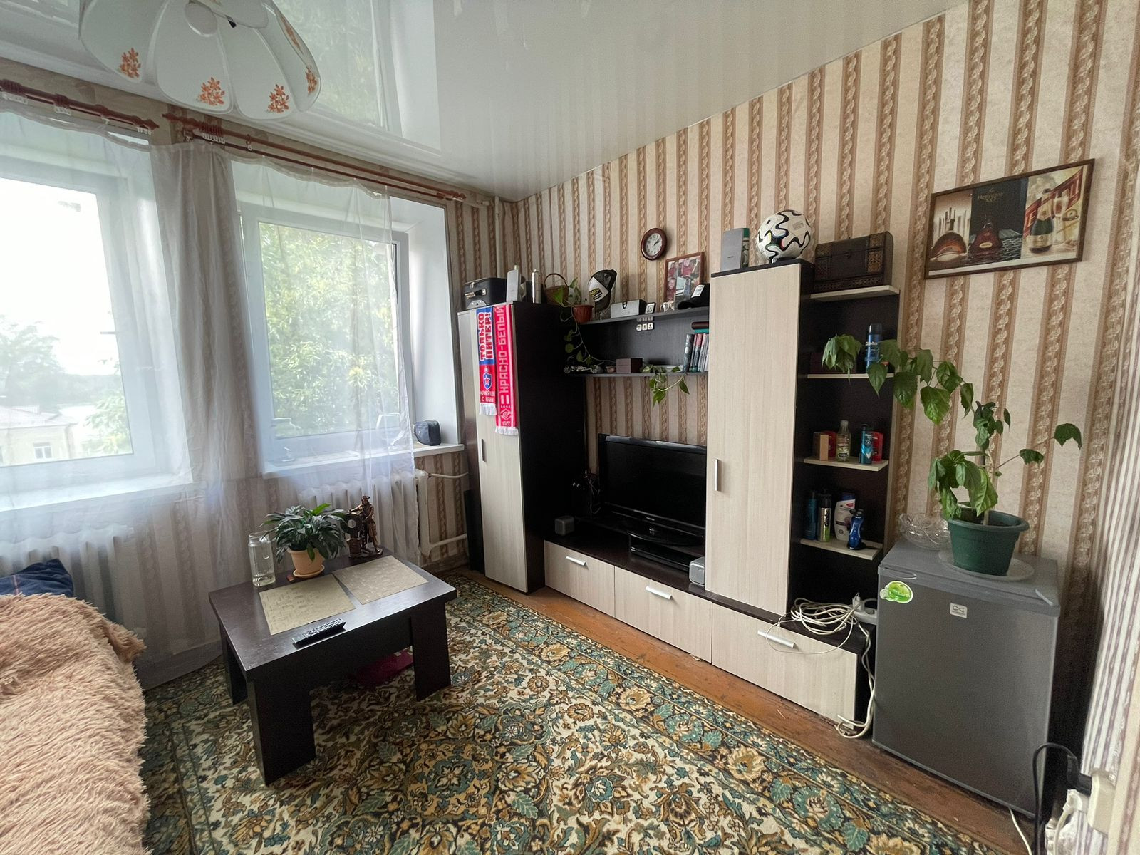 Окна комнаты выходит на широкую реку Неву.
