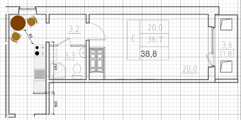 Площадь кухни 8 м2