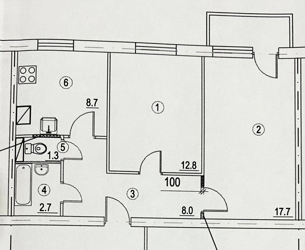 (Снесены кладовки, тем самым расширена кухня и коридор)