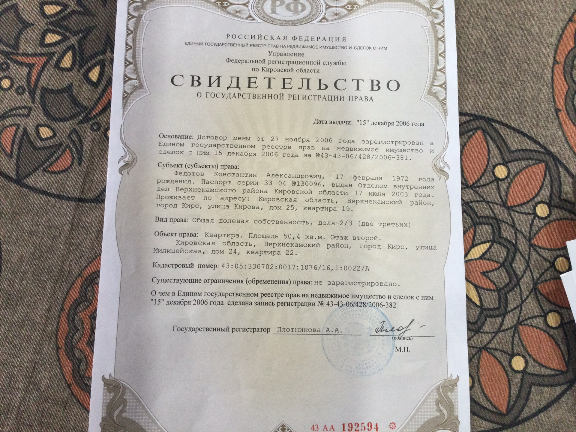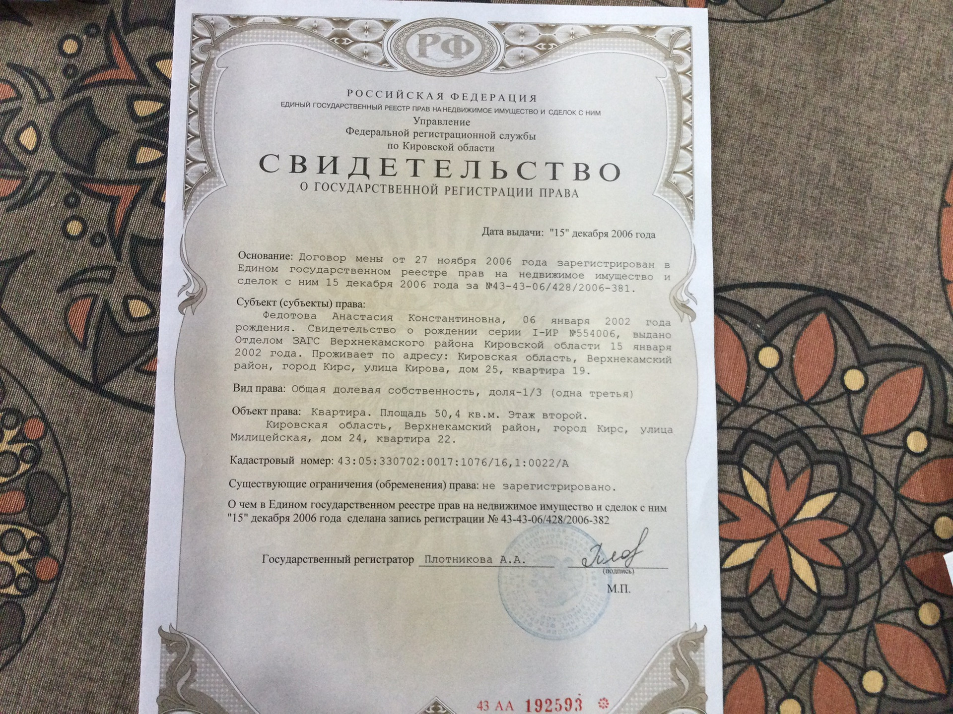 2-комнатная квартира, 50.4 м2, этаж 2 / 3, на продажу в Кирсе, Милицейская улица, 24