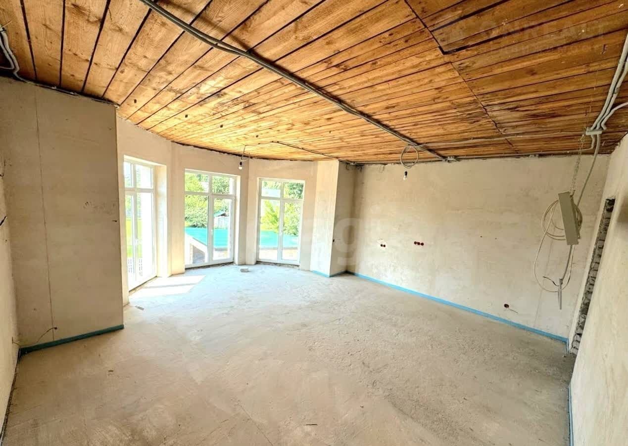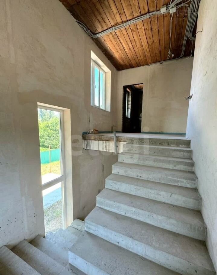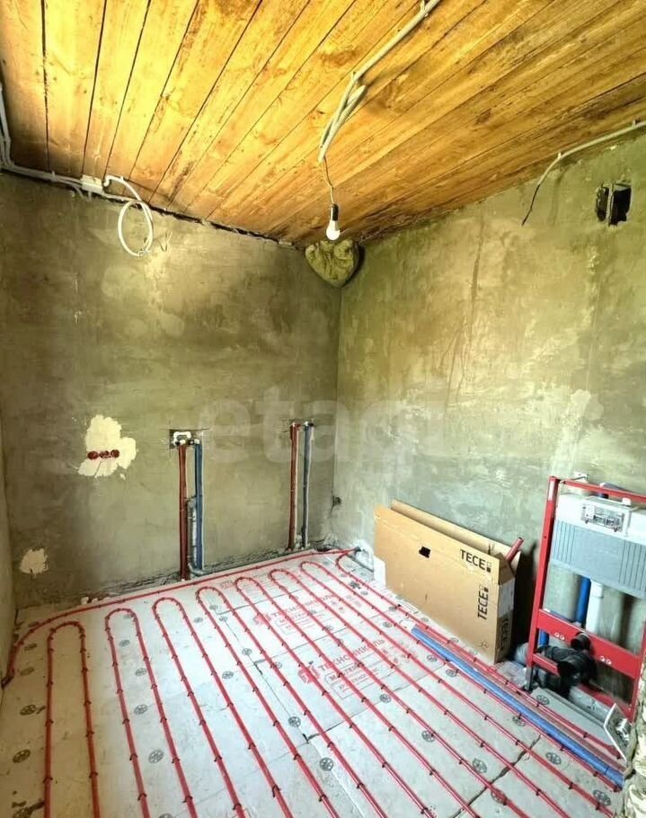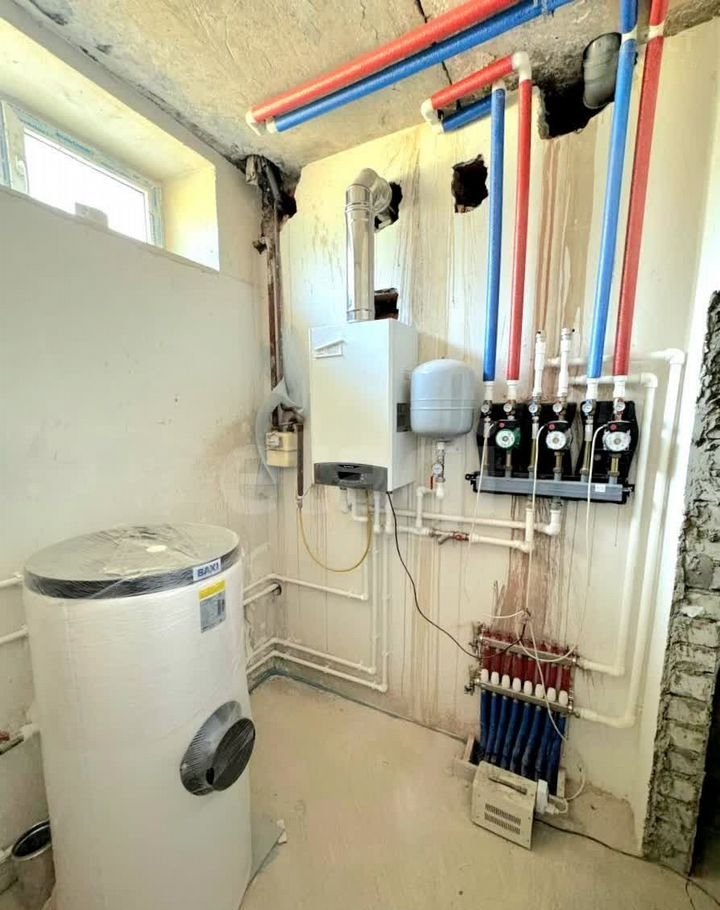 Проведены все коммуникации, сделан теплый пол во всем доме и в подвале. Оплата за газ зимой минимальная. В доме выполнена черновая штукатурка стен.