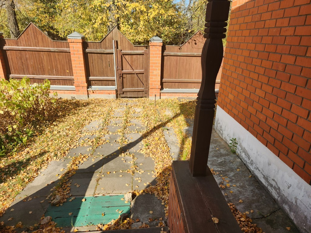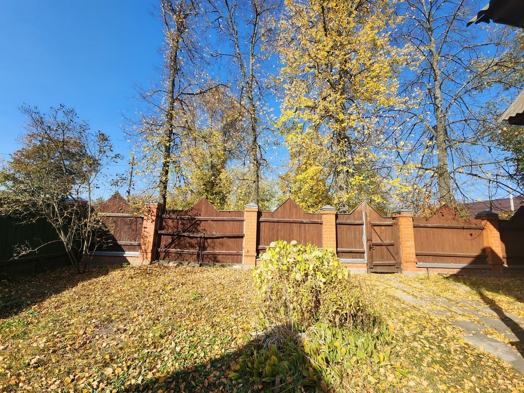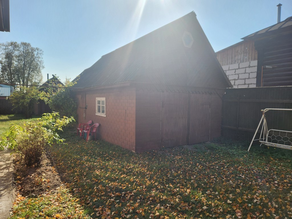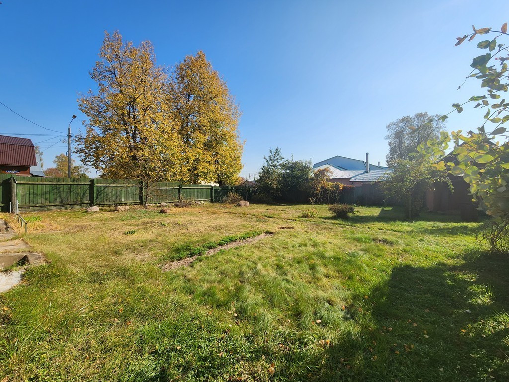 Земельный участок 8 соток , полностью огорожен, на участке небольшой сад , большая свободная зона с газоном. На участке расположены: рубленная баня и гараж с верандой и погреб .
