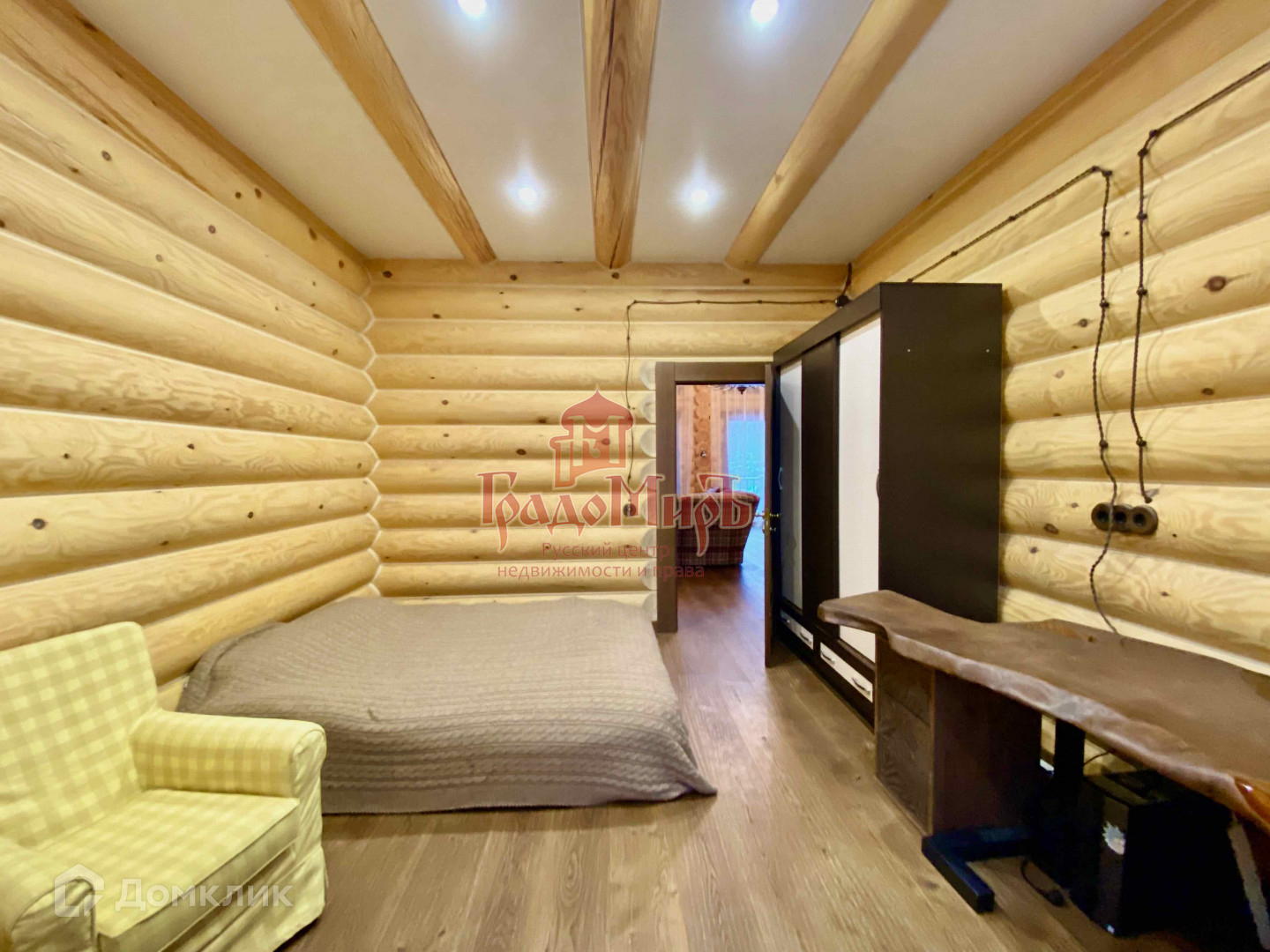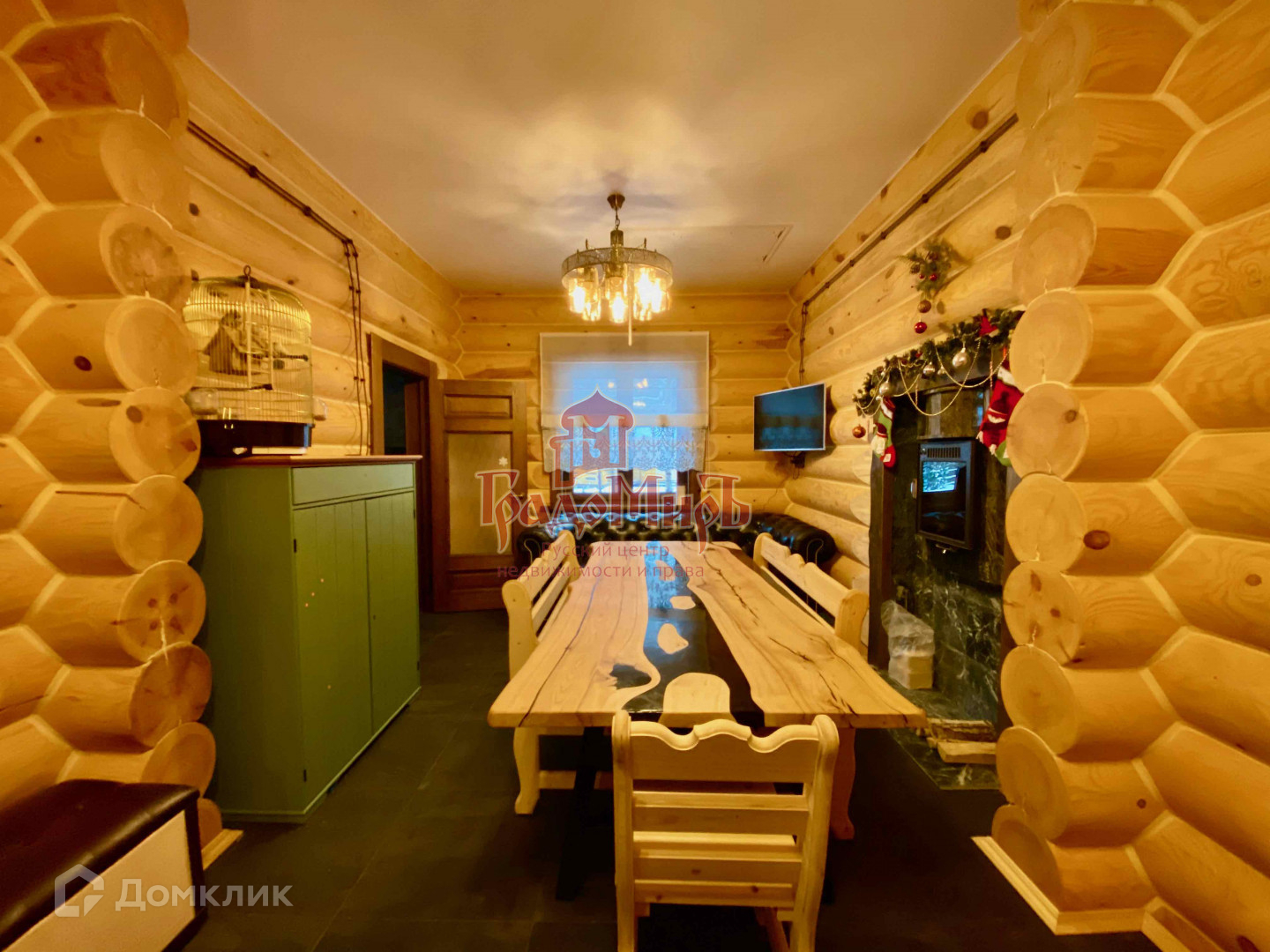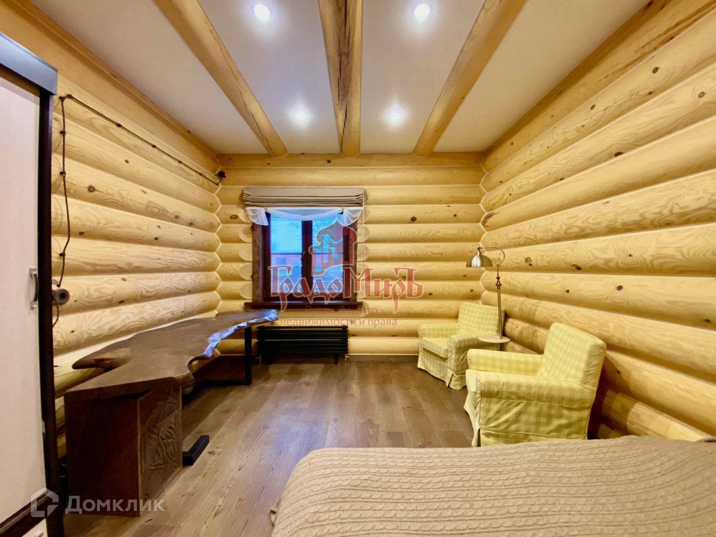 Мебель внутри дома представлена эксклюзивными столами и 2 спальной кроватью из слэбов, библиотекой и комодами из массива.