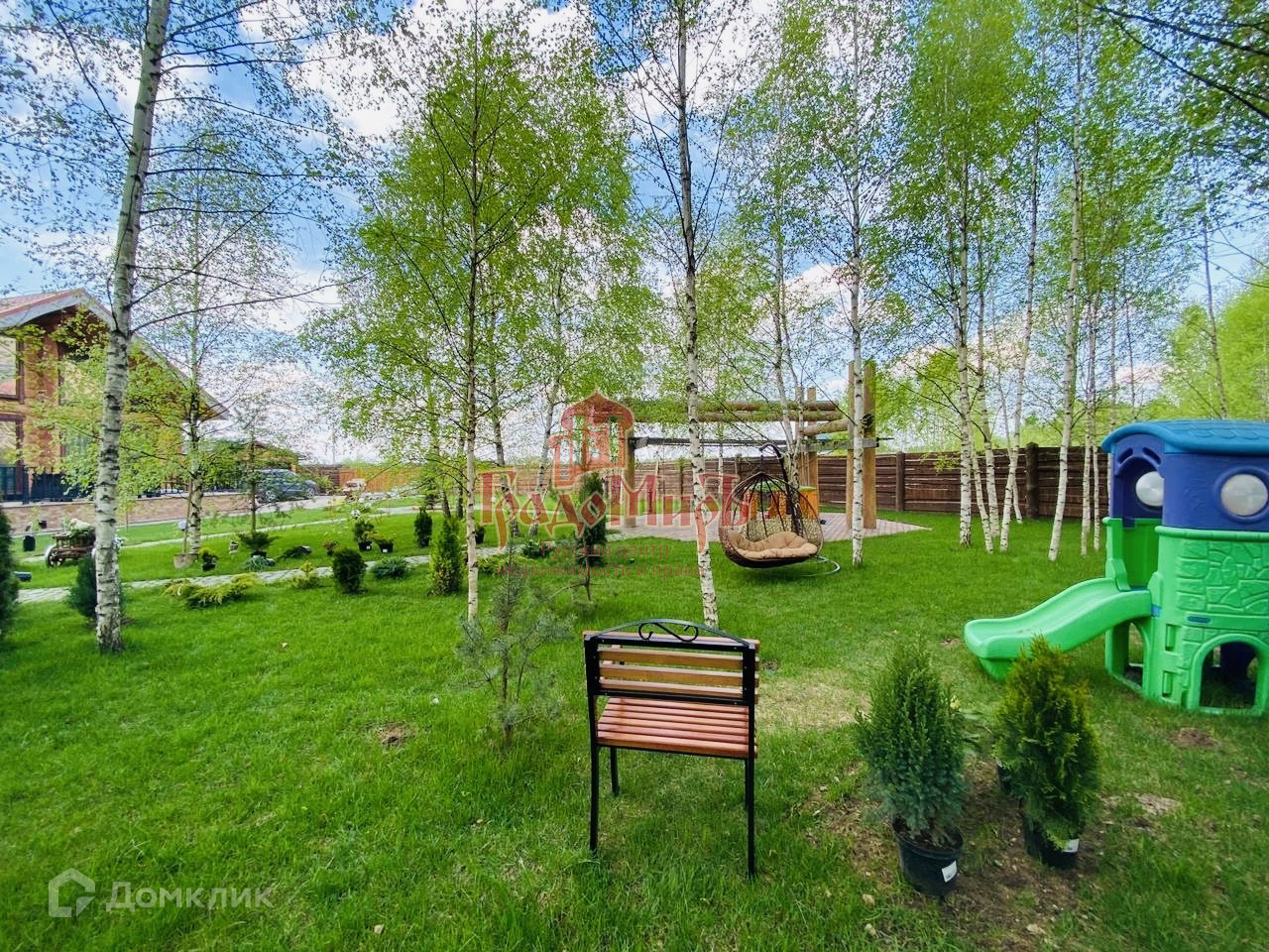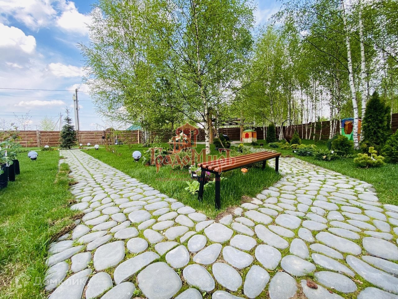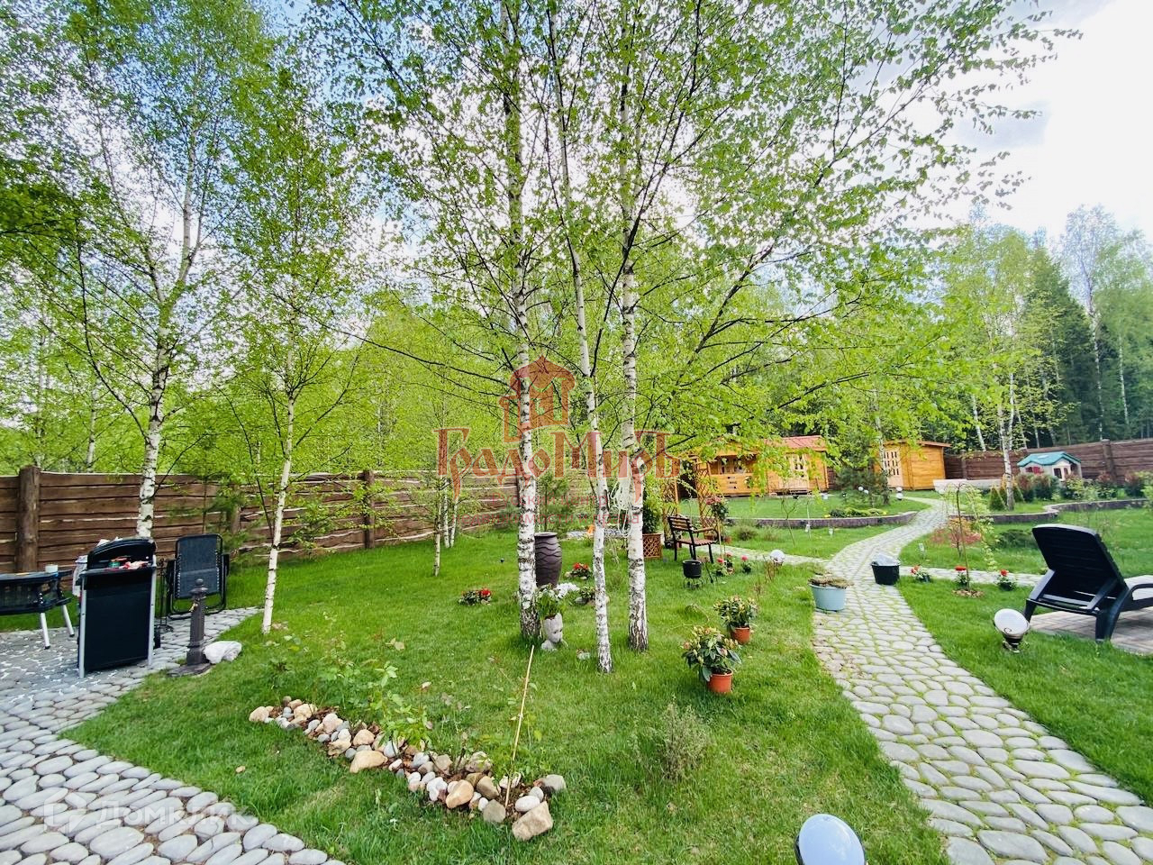 Участок огорожен деревянным забором(Откатные ворота на парковке и гараже).