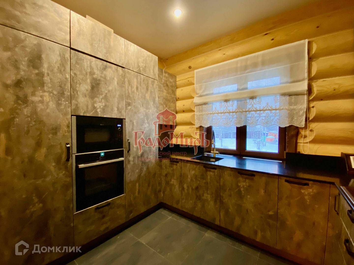 Сделана шлифовка бревен внутри и снаружи, покраска немецким маслом Biofa, теплый шов внутри и снаружи дома (герметик Remmers), эксклюзивная паркетная доска из массива дуба в стиле лофт, керамогранитом Керамо Марацци облицован полностью санузел, полы - в зимнем саду, прихожей, кухне, столовой, парной и помывочной.