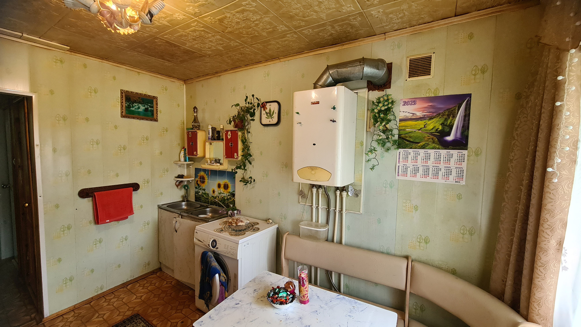 Общая площадь квартиры 102,3 м2 с автономным газовым отоплением и горячей водой от газового котла. Общий просторный коридор 14,3 м2, большая кухня 10,3 м2, раздельный санузел (душевая).