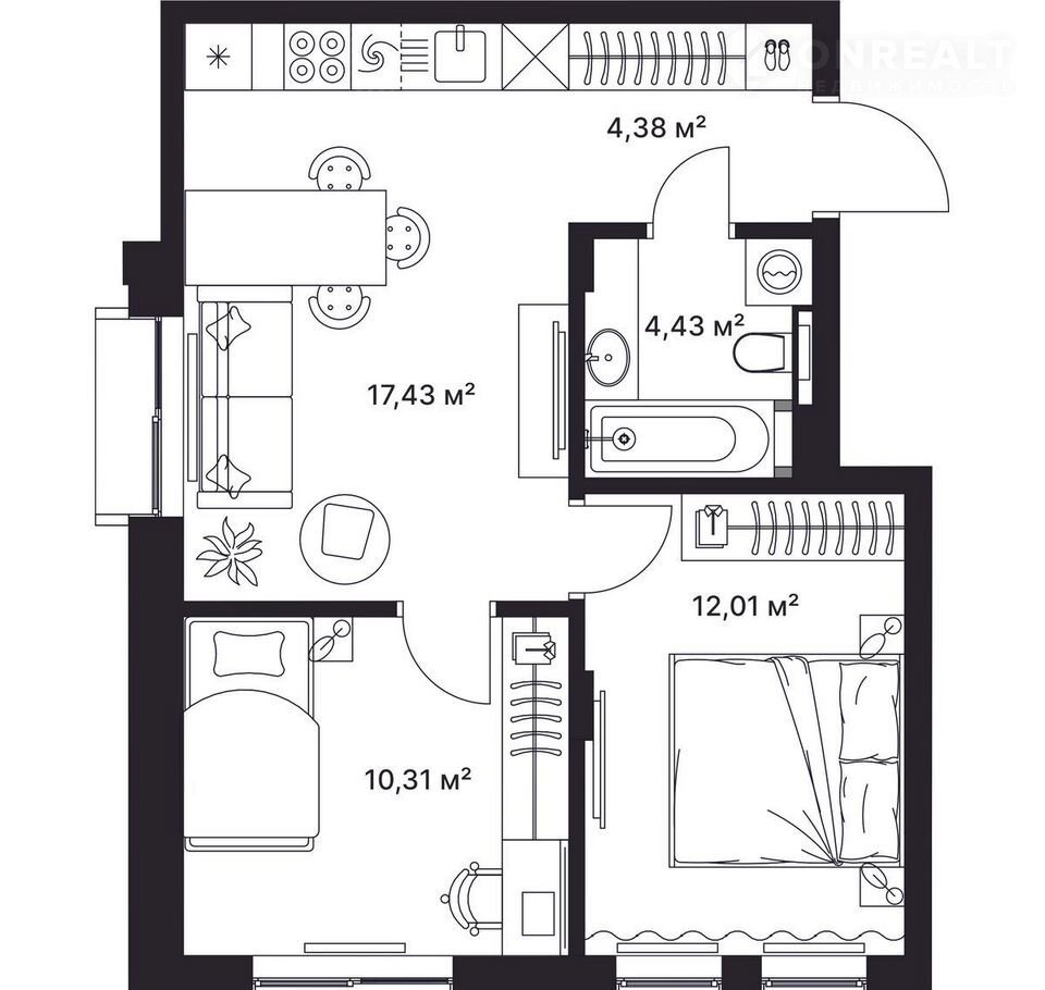 Общая площадь 48.6 м2
