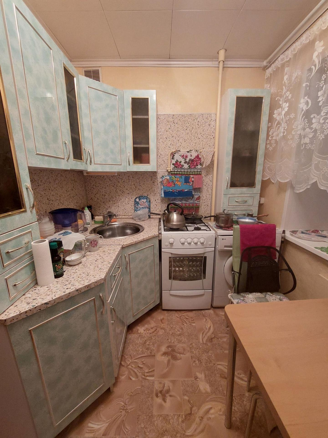 Кухня 6 кв.м ' везде стоят пластиковые стеклопакеты 'застекленная лоджия. В квартире остаётся вся мебель и техника.