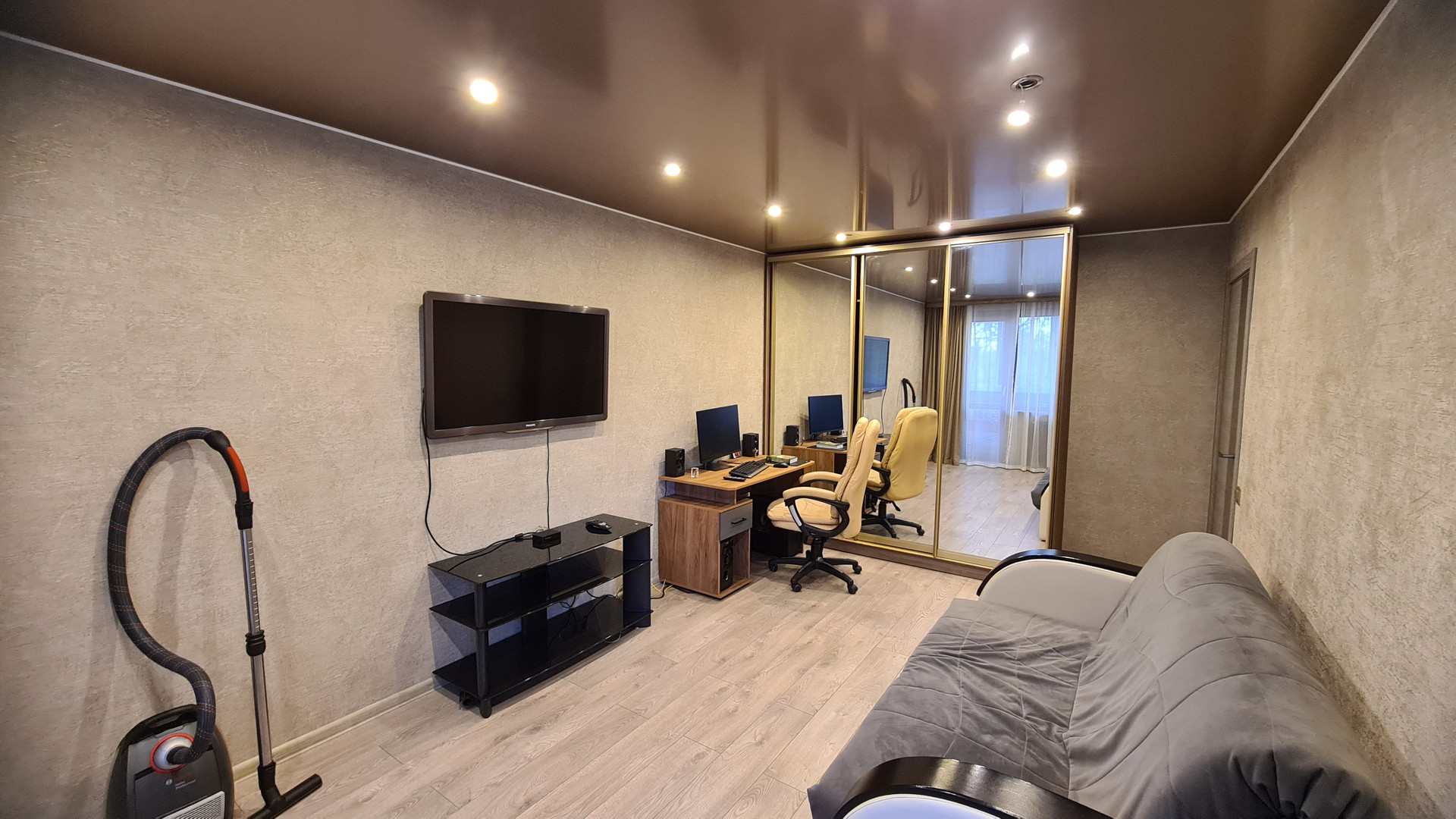 В квартире сделан капитальный ремонт из дорогих материалов. Заменена проводка, трубы. Тёплый пол на кухне и санузле, установлены качественные двери, сантехника, натяжные потолки, пол - ламинад, санузел в плитке. Квартира не требует вложений, заезжай-живи.
