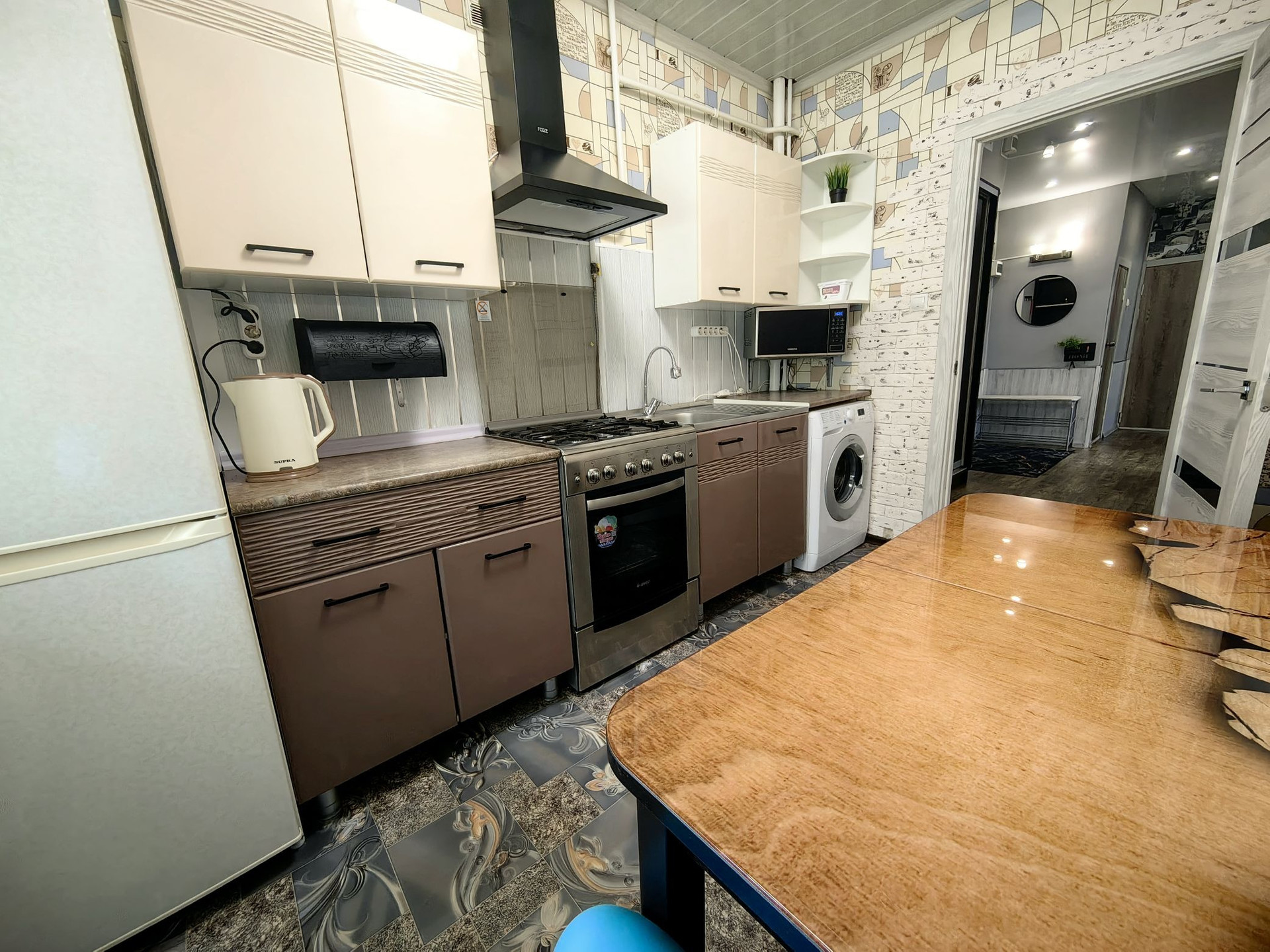 Квартира обладает продуманным дизайнерским ремонтом, который создаёт атмосферу комфорта и уюта. Площадь кухни составляет 9 квадратных метров, что позволяет разместить всё необходимое оборудование и создать удобное пространство для приготовления пищи. Также в квартире имеется балкон, где можно наслаждаться свежим воздухом и видами на окрестности.
