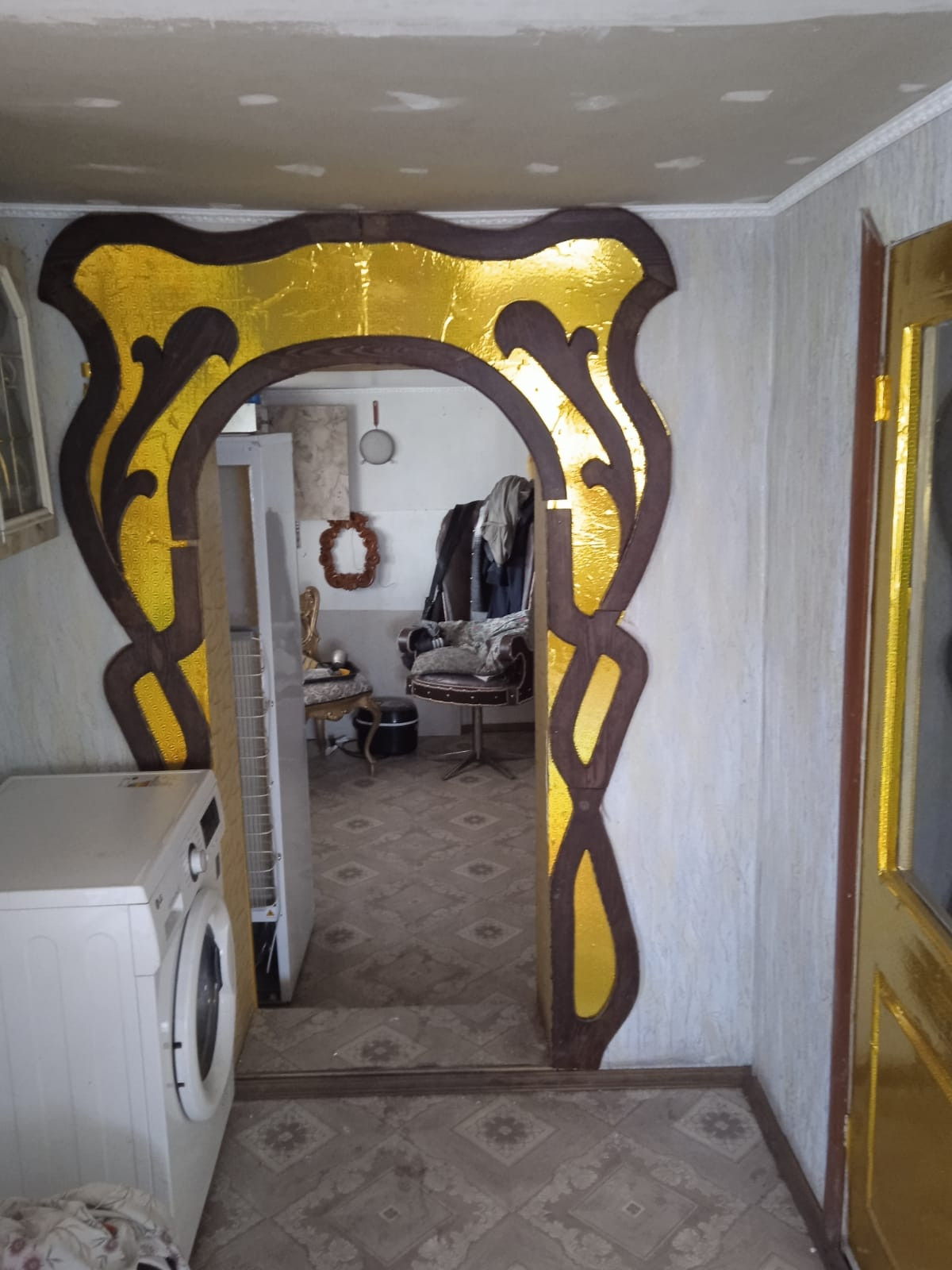 Покупателю остаётся новая бытовая техника: 2х камерный холодильник, стиральная машина  LG,  телевизор, а также мебель ручной работы: 2х спальная кровать, кресло- качалка и кожаное, табуреты, стол, стулья.
