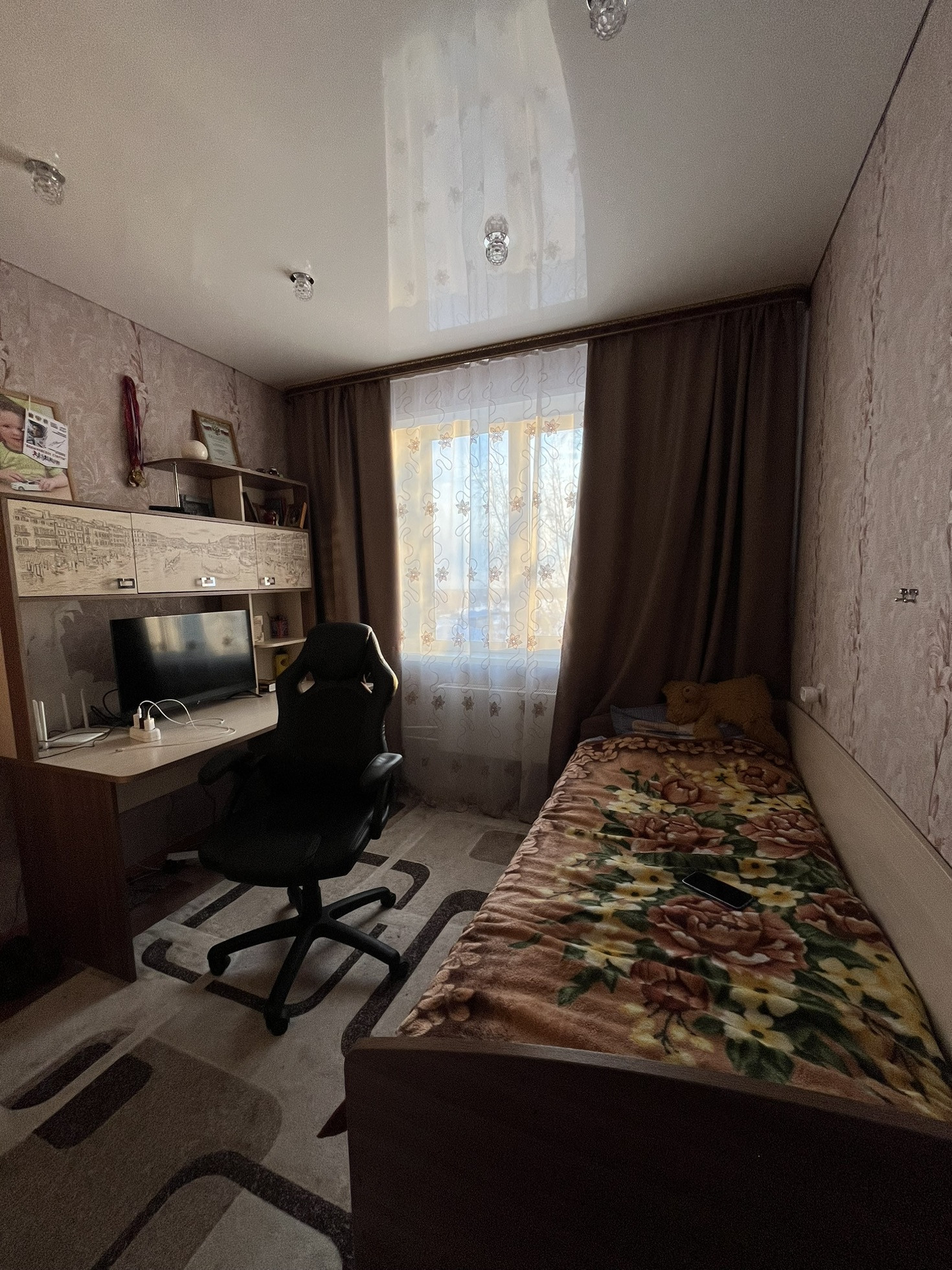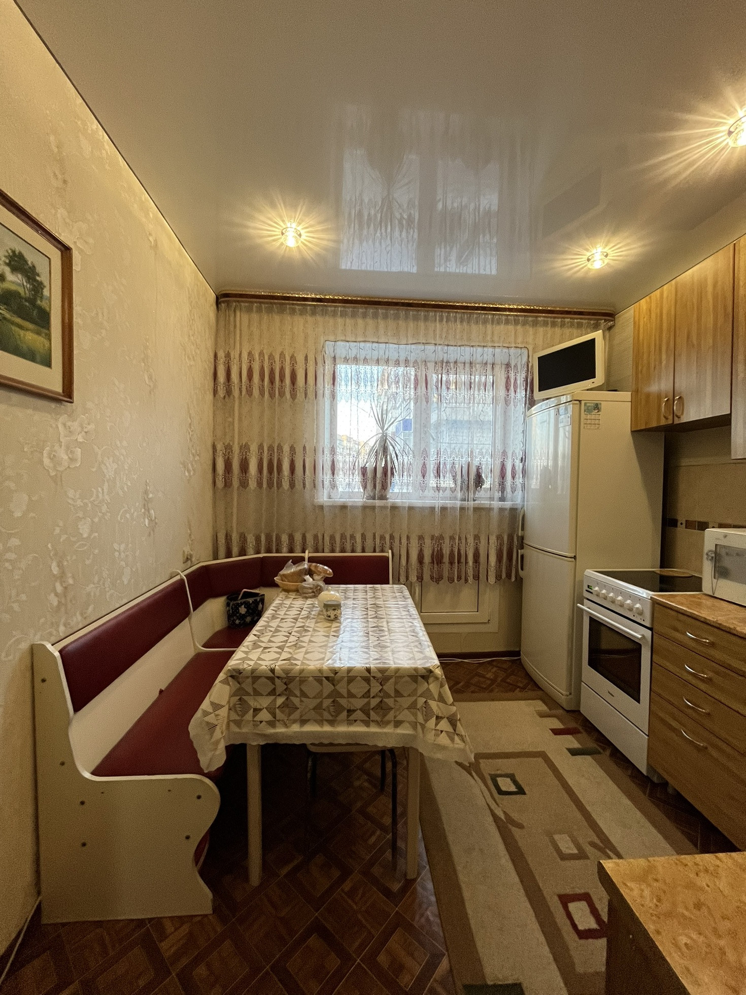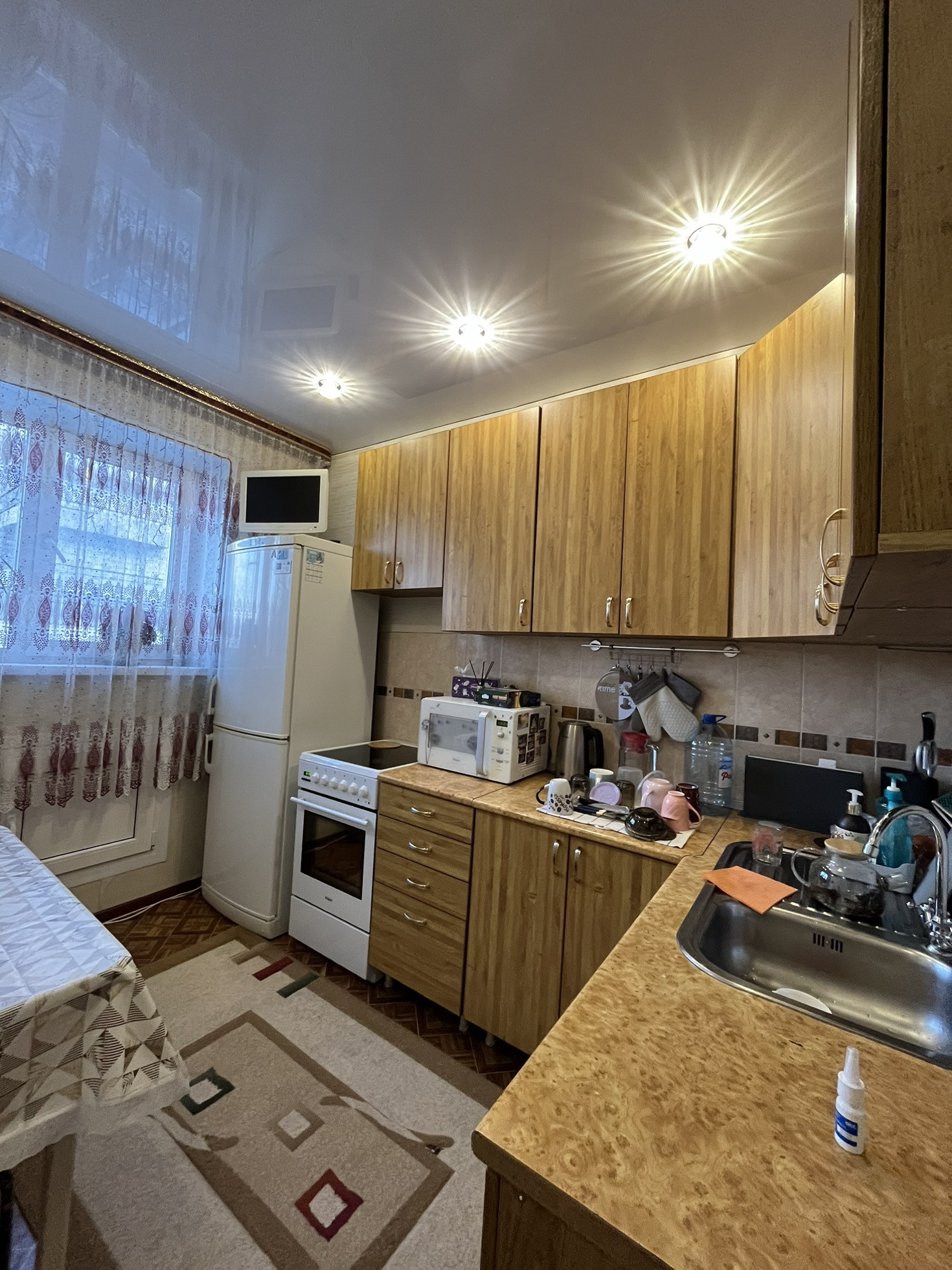 Во всей квартире натяжные потолки. Новая входная дверь. Санузел раздельный, установлены счетчики, становления новые радиаторы.