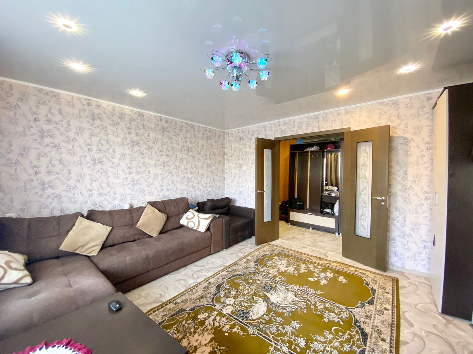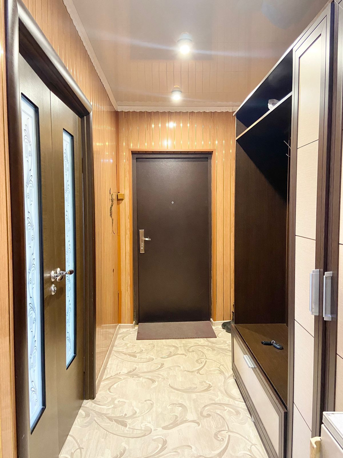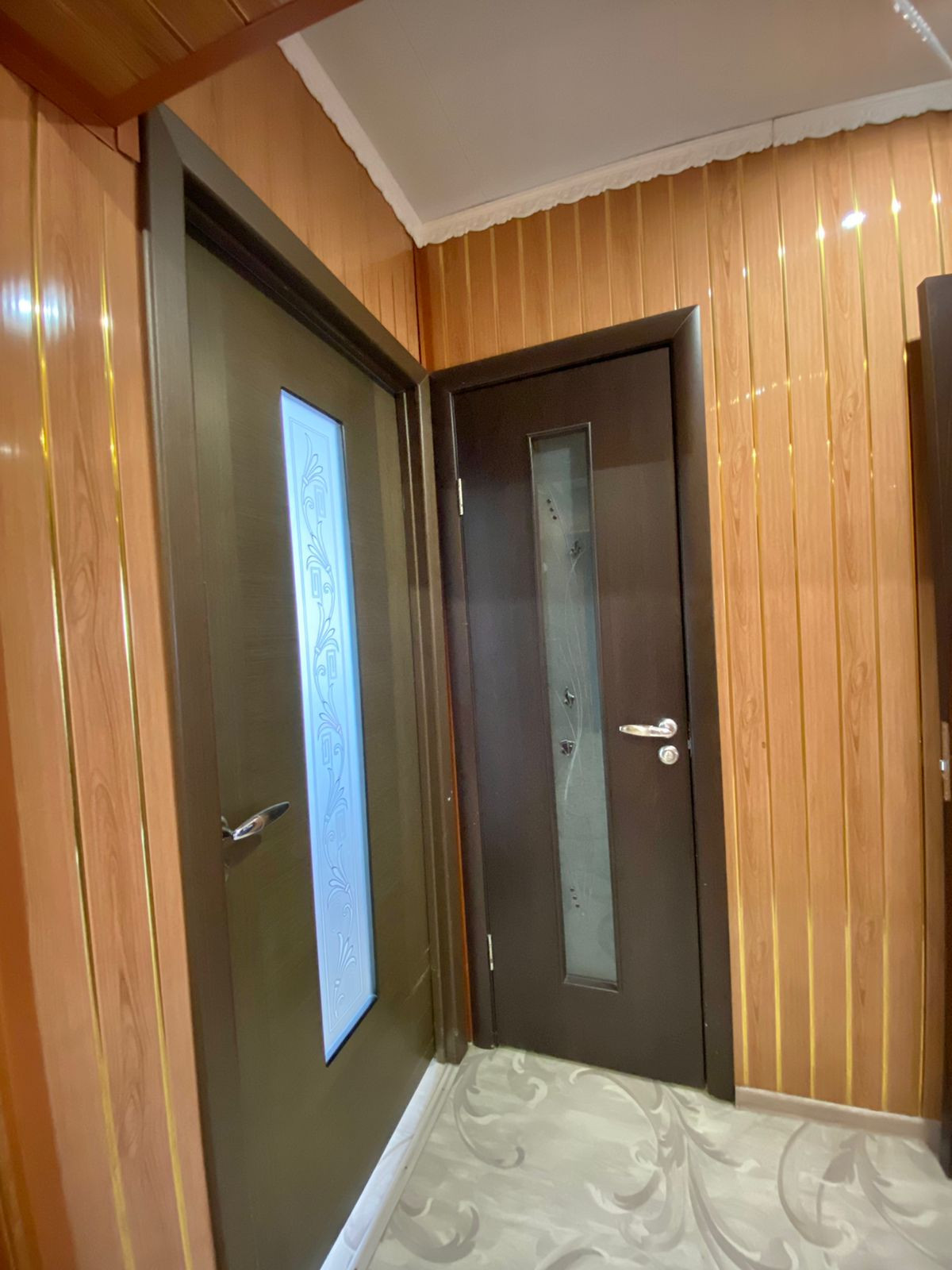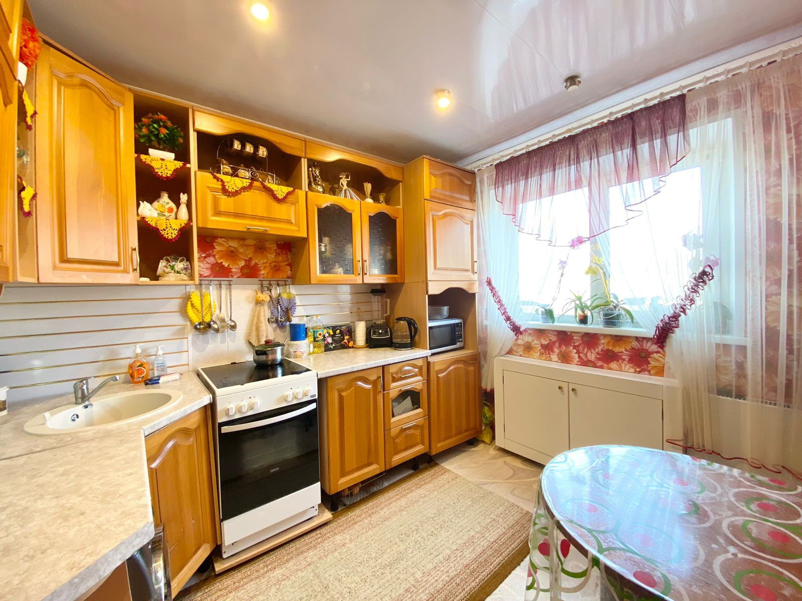 Во всех комнатах пластиковые окна, на полу качественный линолеум, современные межкомнатные двери, натяжные потолки.