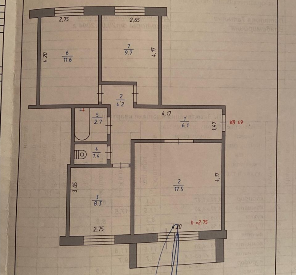 Высота потолков 2.75 м