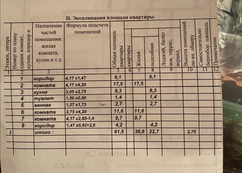 Общая площадь 61.5 м2