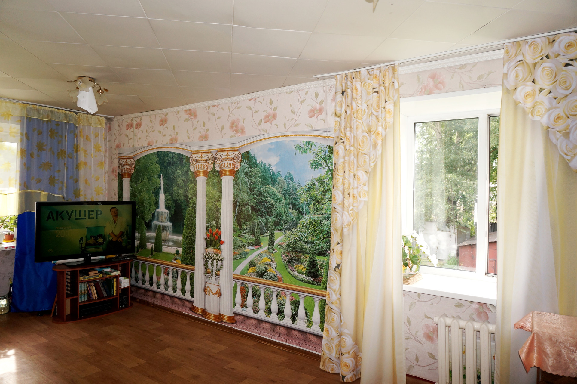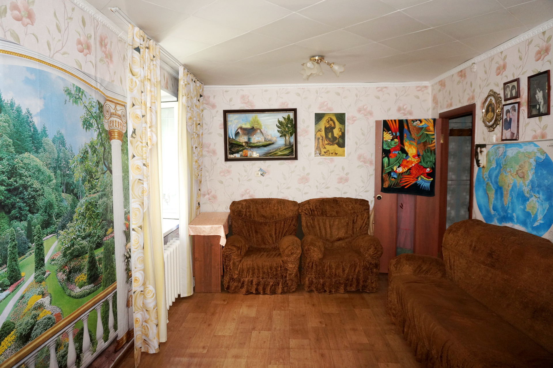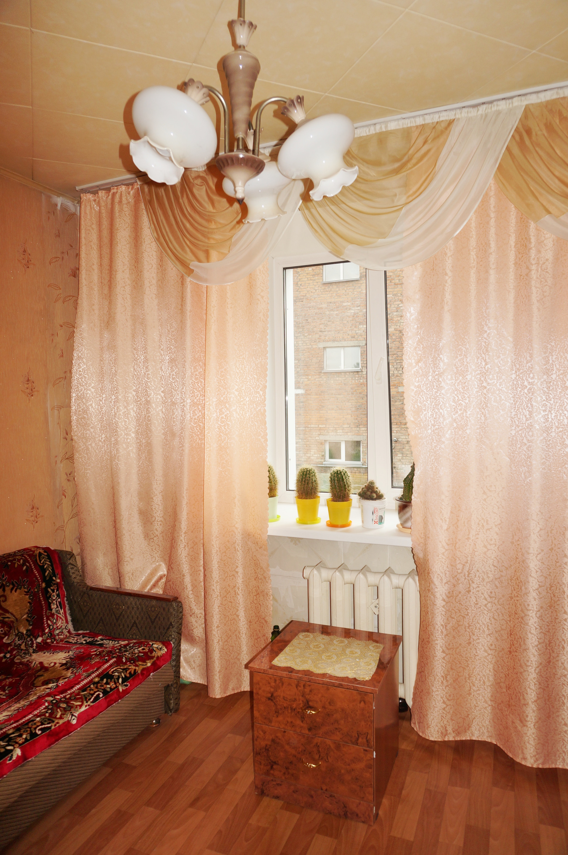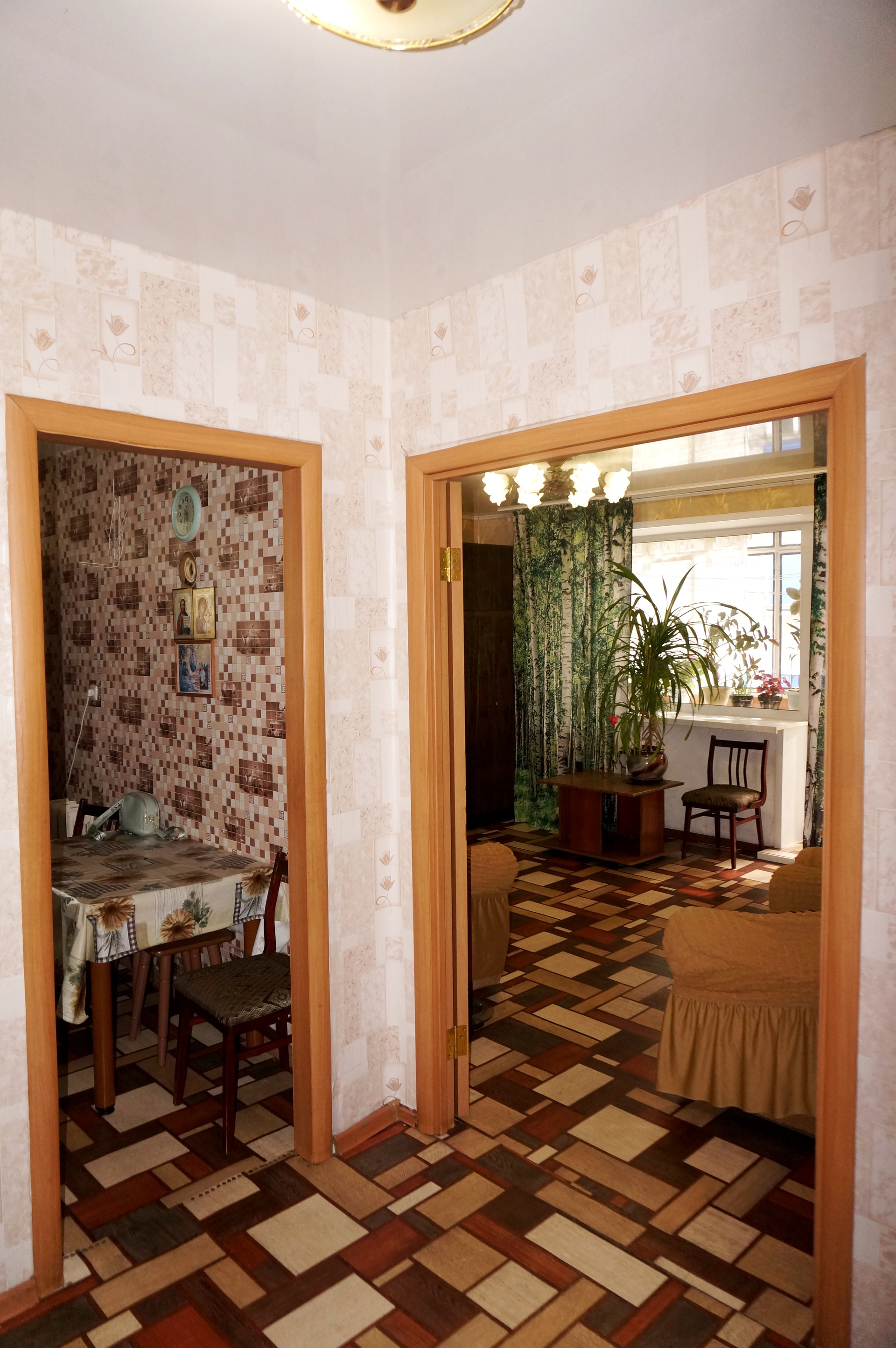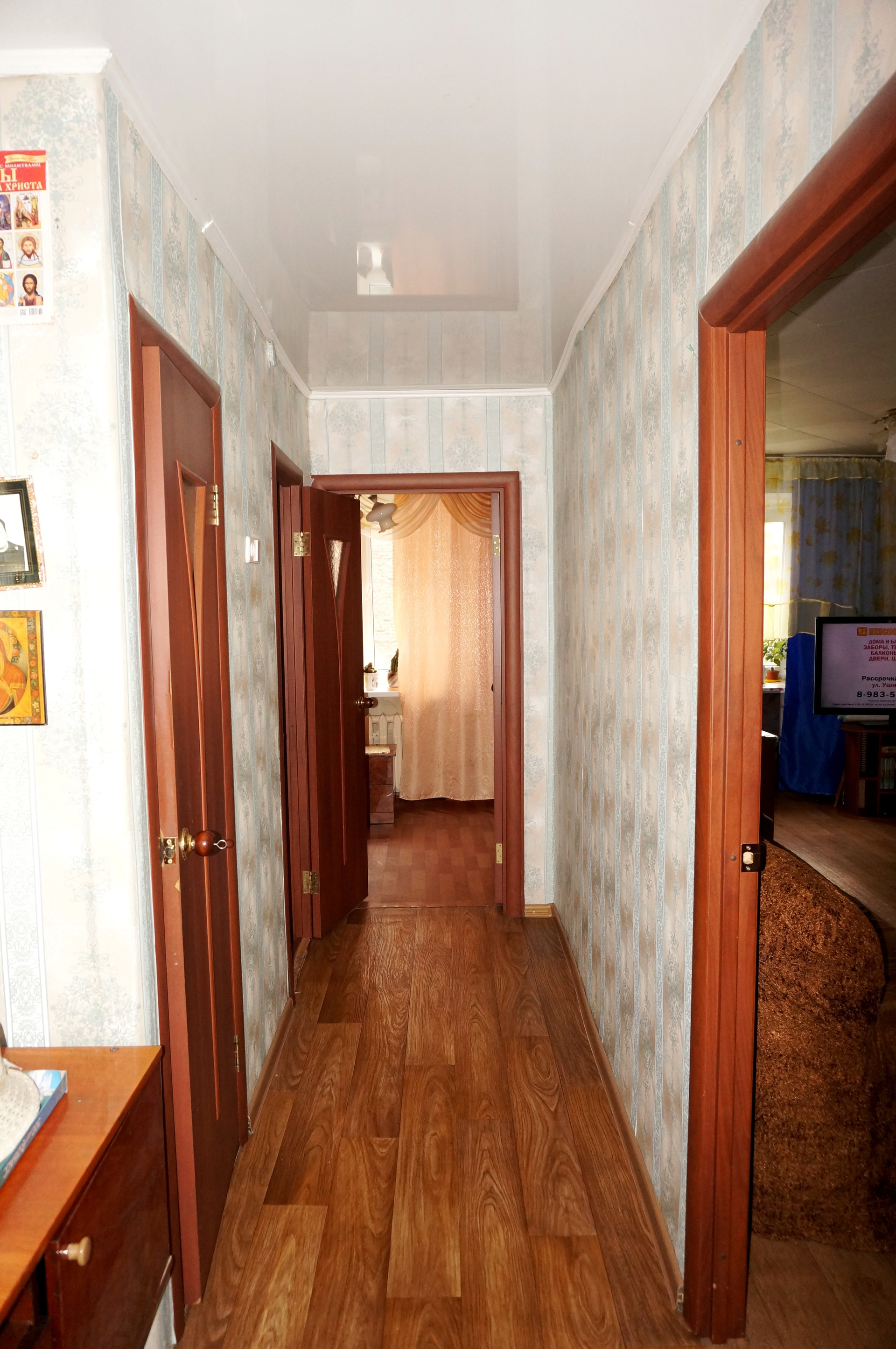 Квартира очень теплая и солнечная. Сделан качественный ремонт, поменяна электропроводка, новые радиаторы, потолки частично натяжные (в кухне и коридоре), в жилых комнатах выровнены и покрашены, хорошие межкомнатные двери, с/узел выложен кафелем, новая сантехника, стены выровнены и оклеены обоями, на полу дорогой качественный линолеум, балкон застеклён и обшит.