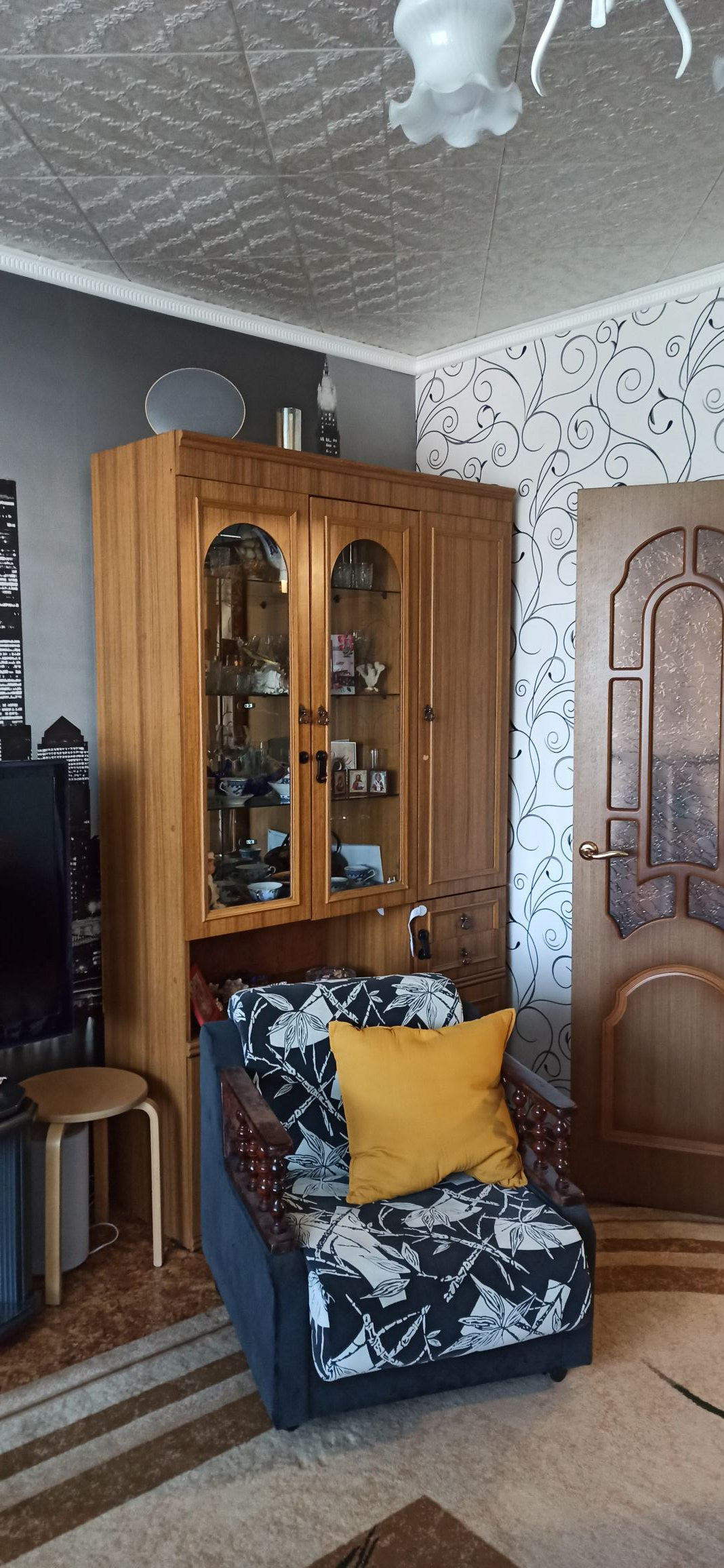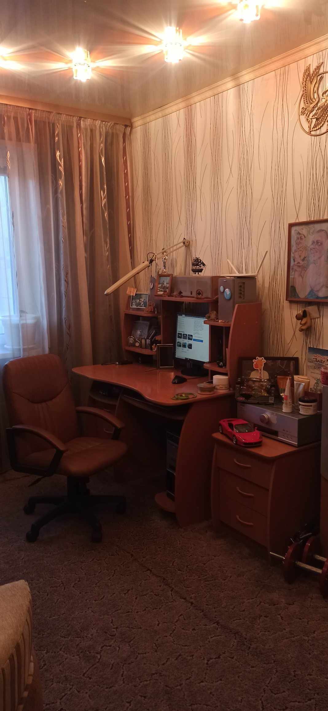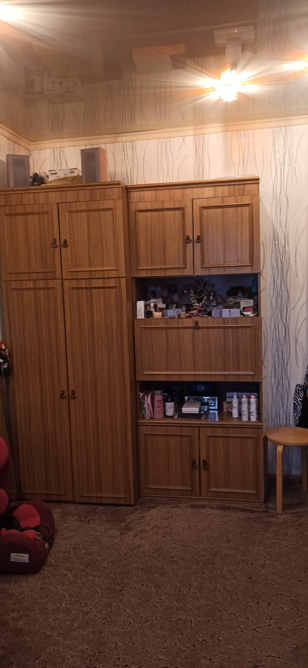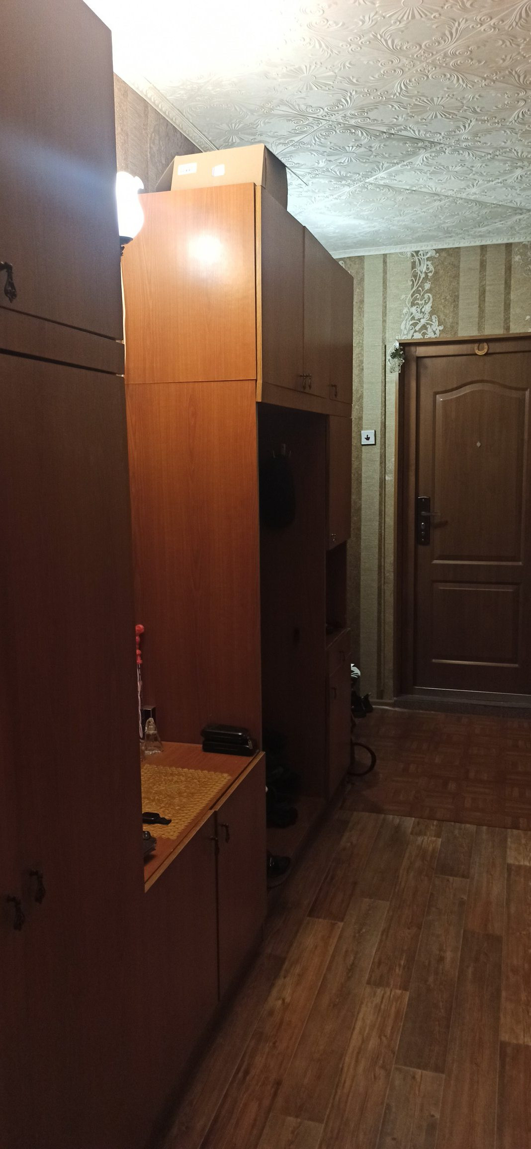 Новым хозяевам остаётся: кухонный гарнитур со встроенной техникой (варочная панель, духовой шкаф), спальный гарнитур (встроенный шкаф, кровать, тумба), вся корпусная мебель (в большой спальне - шкафы, стол письменный, тумба), шкафы в коридоре и в зале, стиральная машинка.