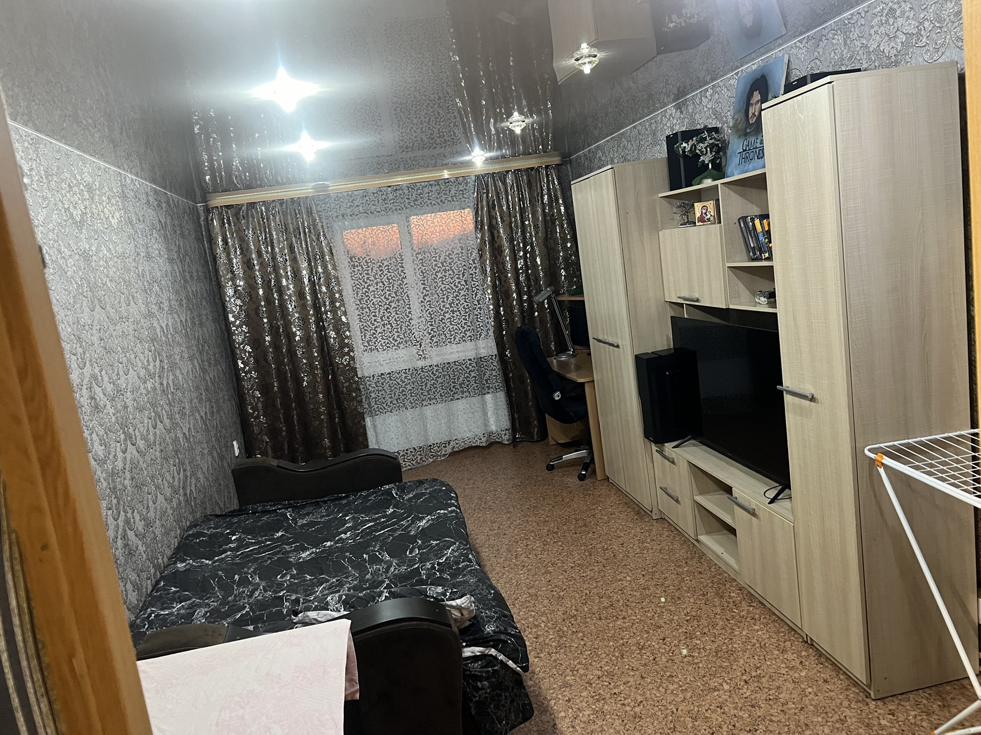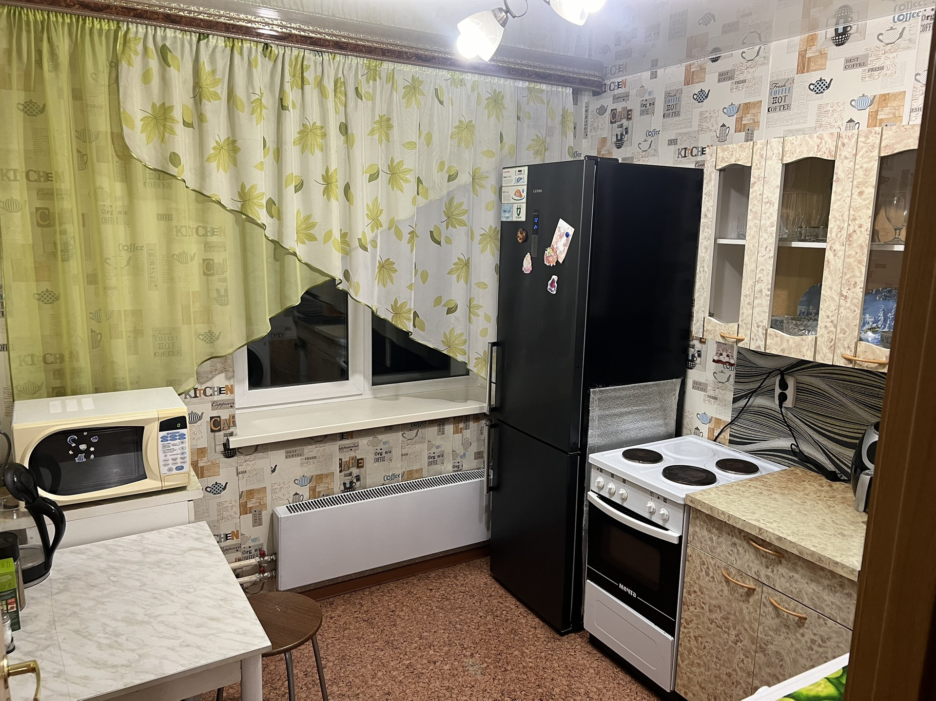 Стены выровнены, аккуратно оклеены обоями, на полу во всех комнатах постелен линолеум. Сан.узел совмещен, пол в ванной комнате выложен плиткой, стены частично покрыты кафелем нейтрального цвета, установлены счетчики. Пластиковые окна. Рядом магазины, остановка общественного транспорта.