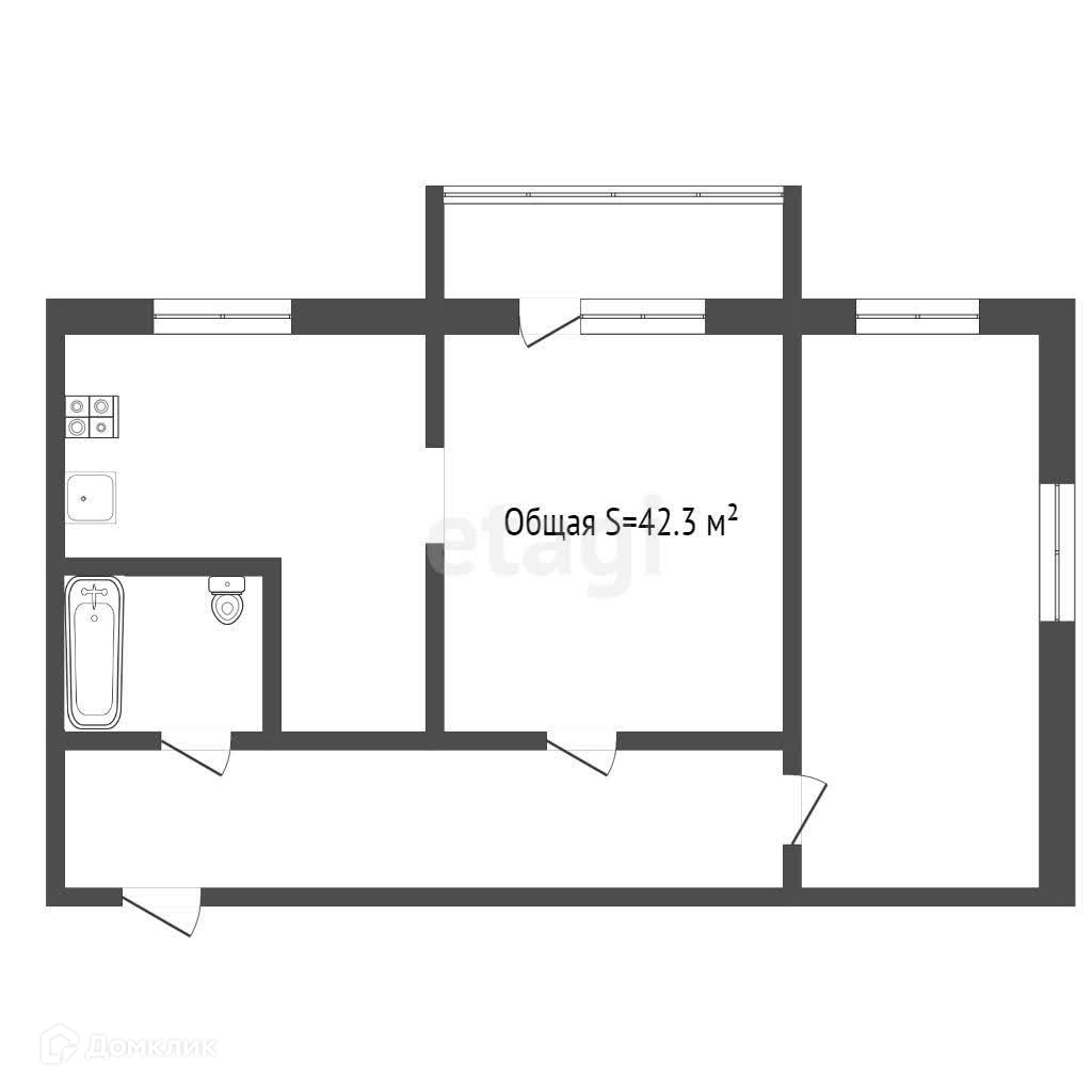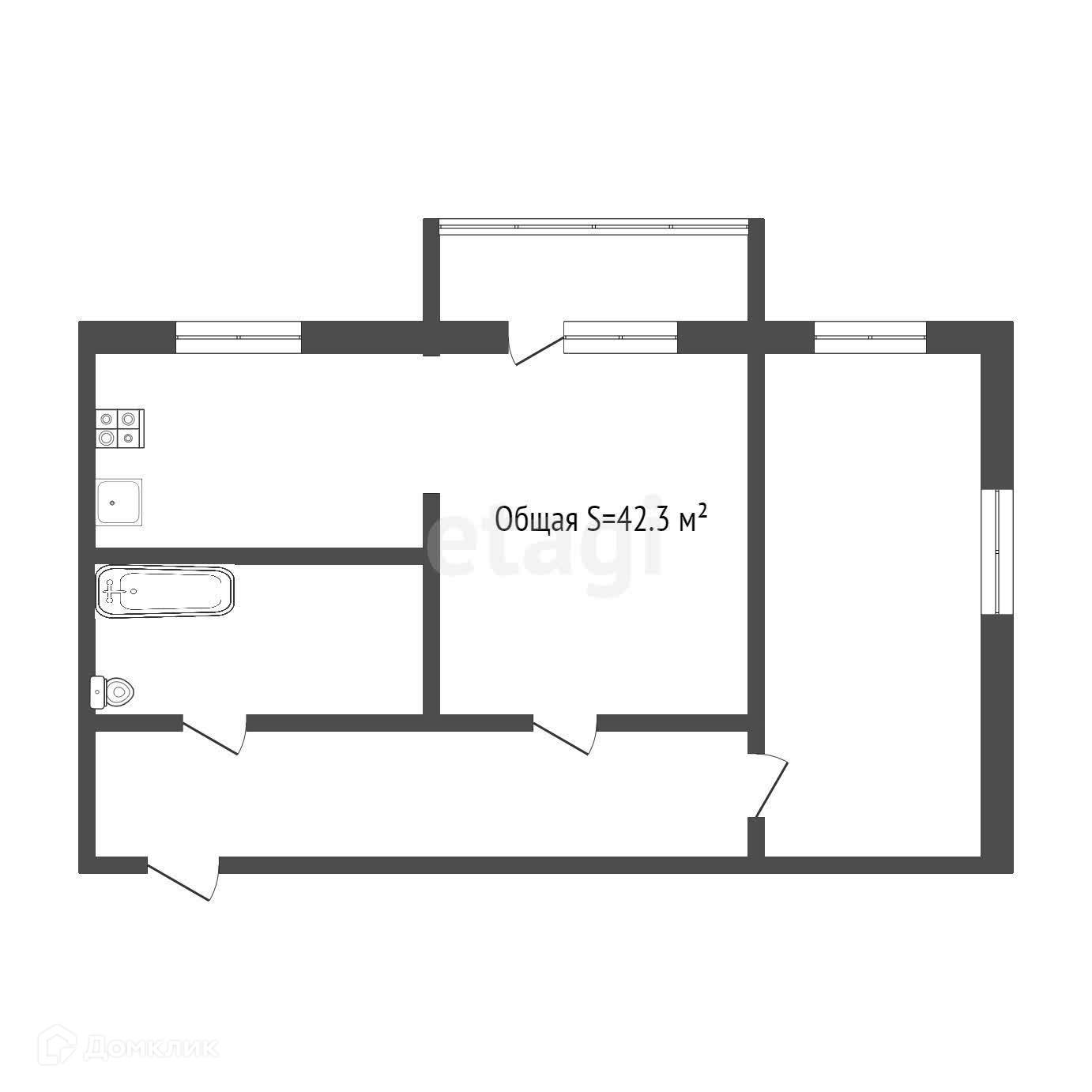 Общая площадь 42.3 м2
