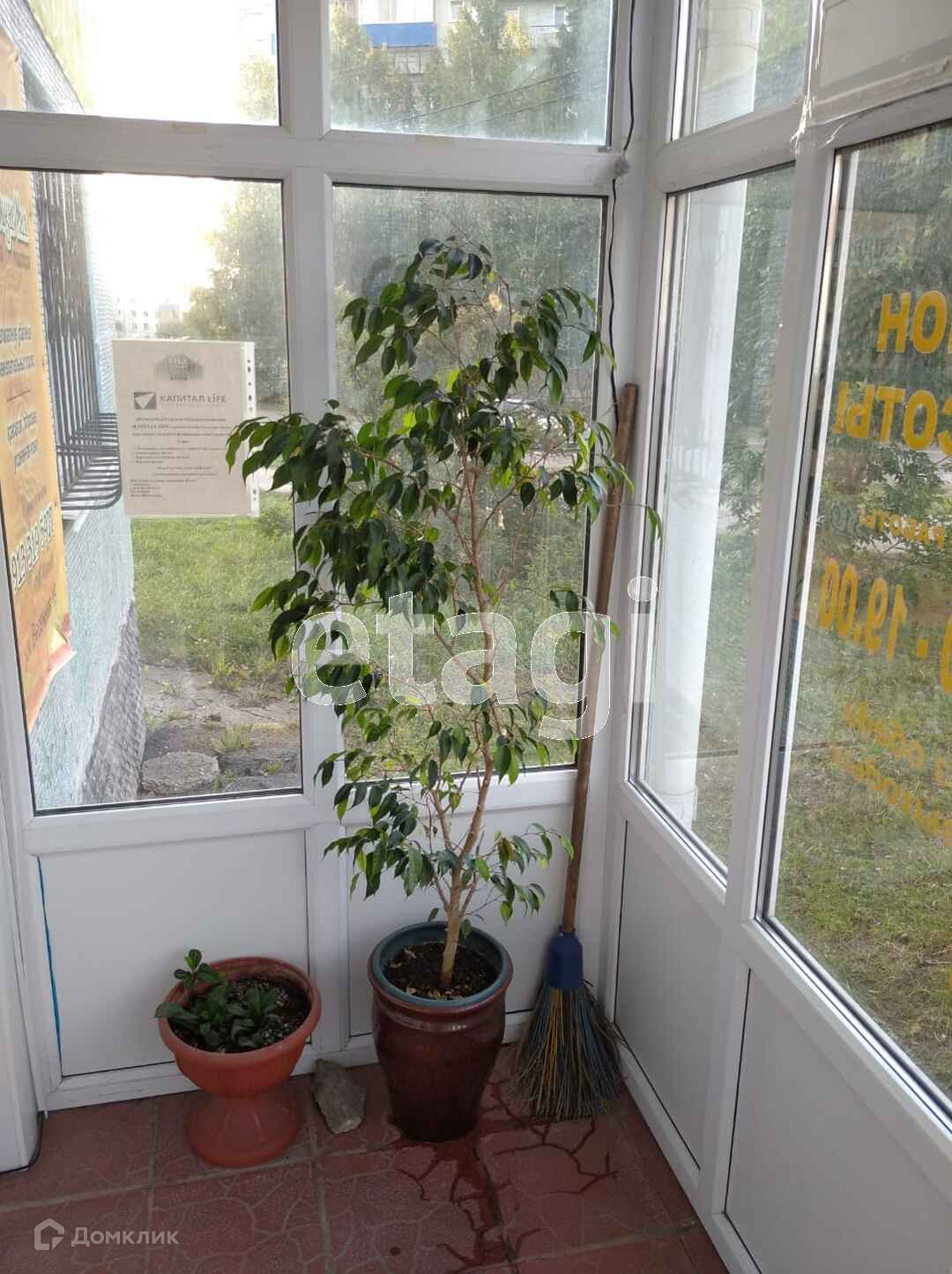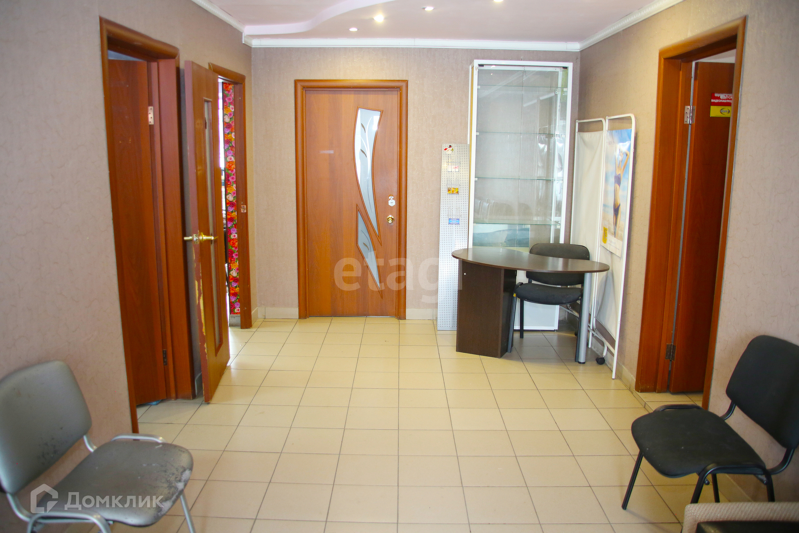 Площадь 86.5м, окна пластиковые, застекленный тамбур, потолок навесной, окна пластиковые, на полу плитка.