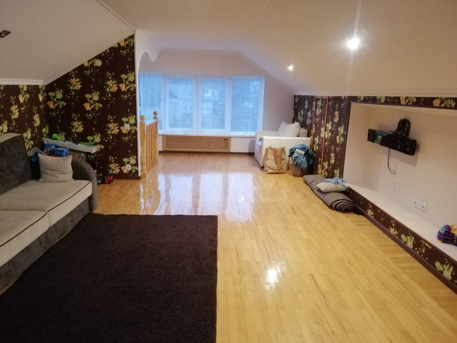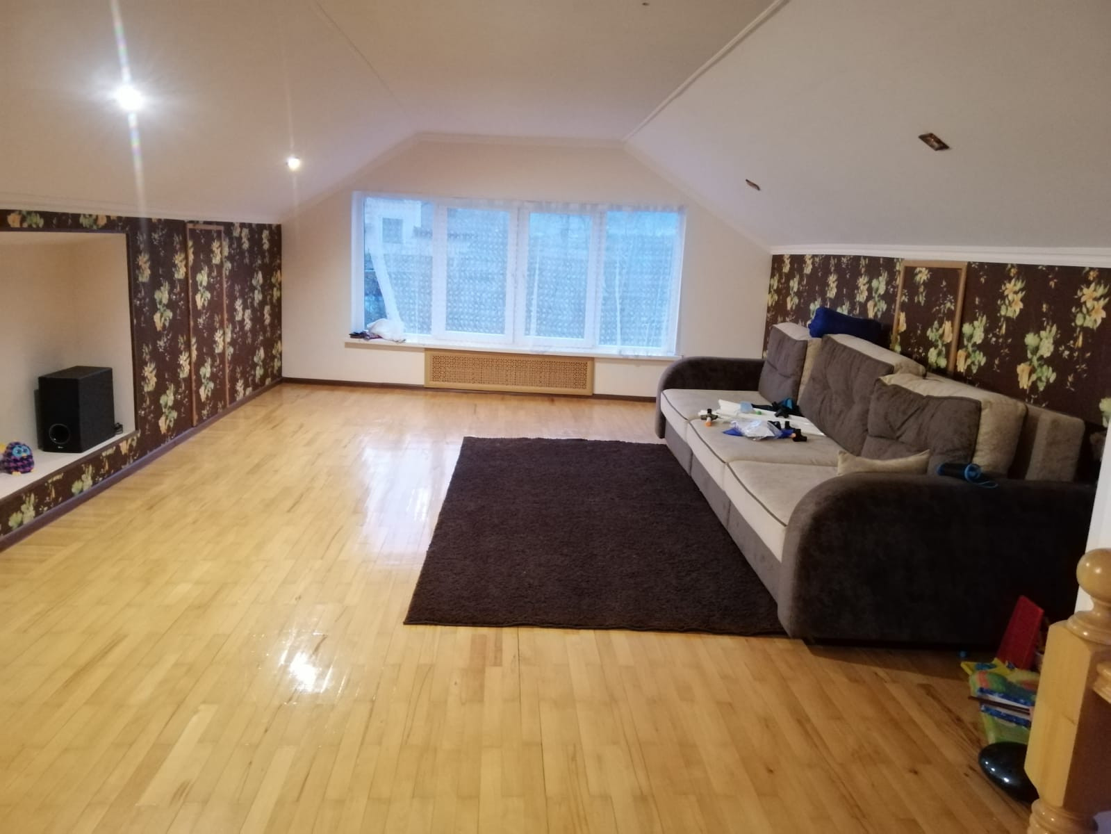 На третьем этаже большая мансарда.