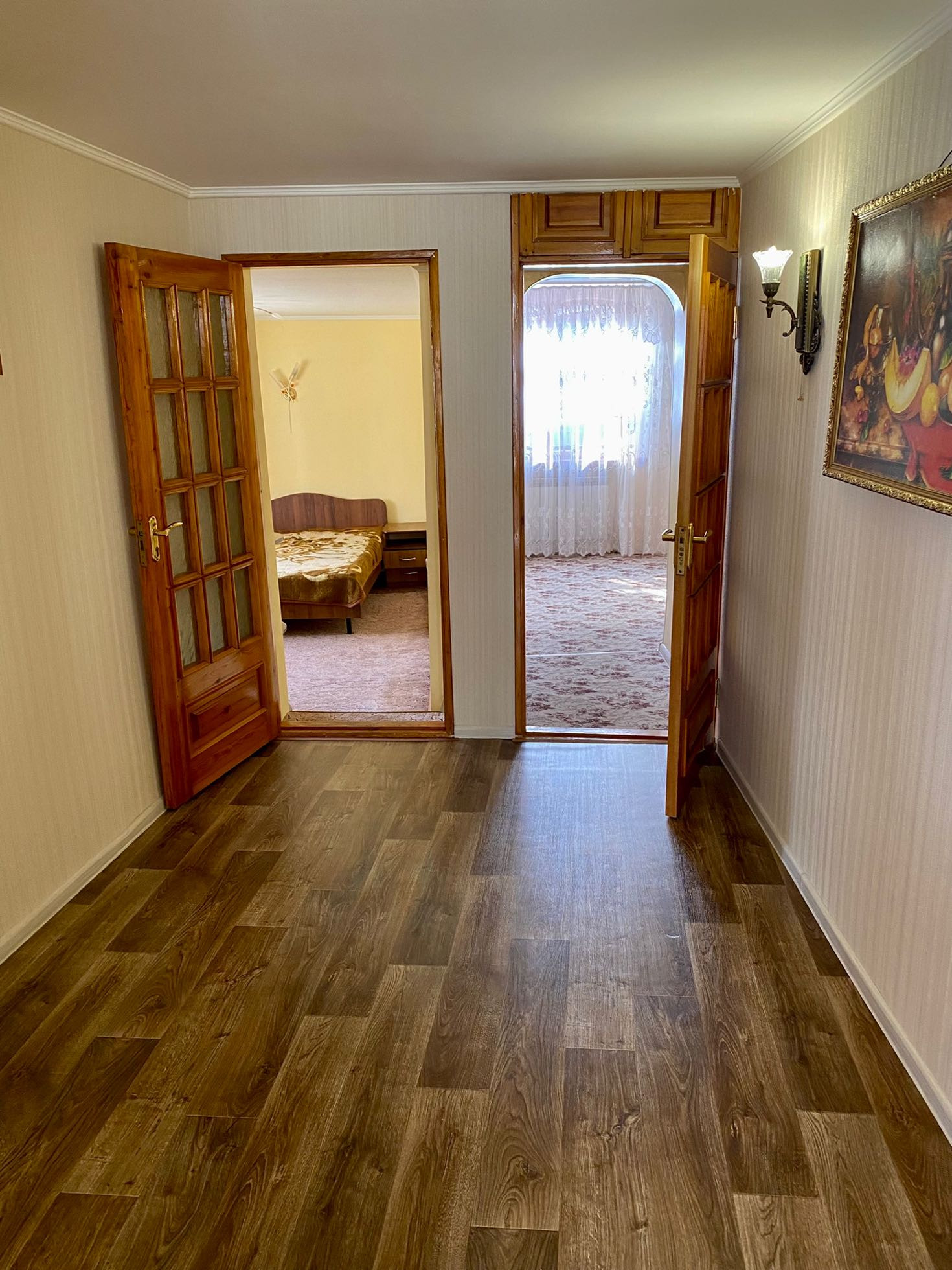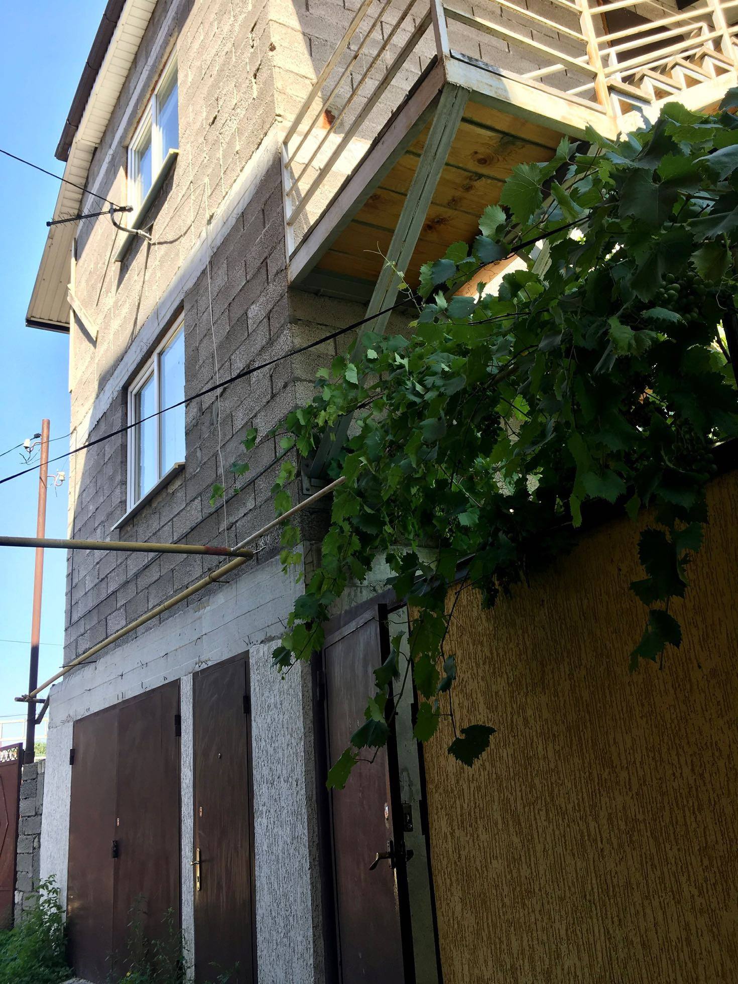 Жильё плюс готовый бизнес - 2 дома на участке: один из 2-х комнат для собственного проживания, другой дом состоит из 2-х раздельных двухкомнатных квартир (сдача в аренду посуточно или долгосрочно). Также возможно проживание 3-х семей - и рядом и  раздельно. В доме есть капитальный гараж с отоплением, санузлом и ванной. Также имеется плодоносящий сад, двор увит виноградом. Тихое и солнечное место.