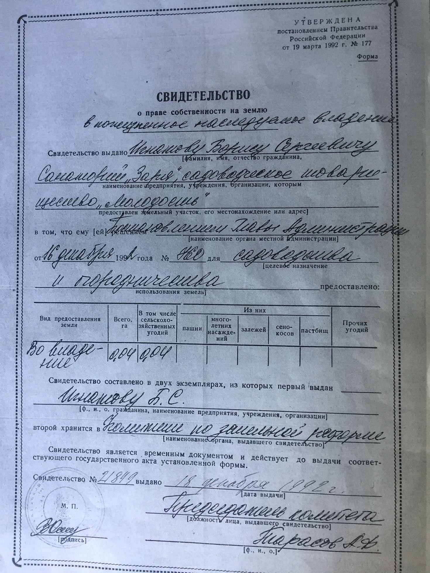 Площадь участка 4 сот.