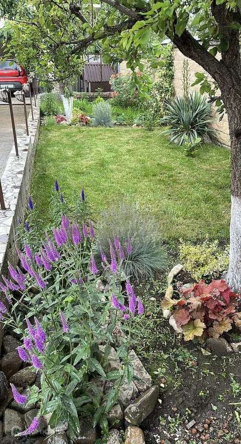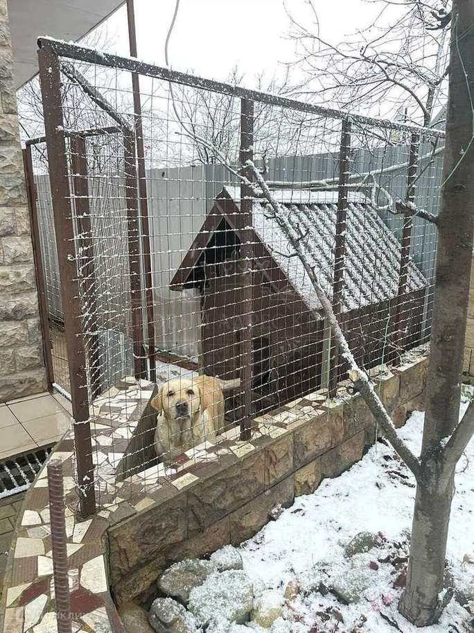 На территории ландшафтный дизайн, газон. Имеется вольер для собаки.