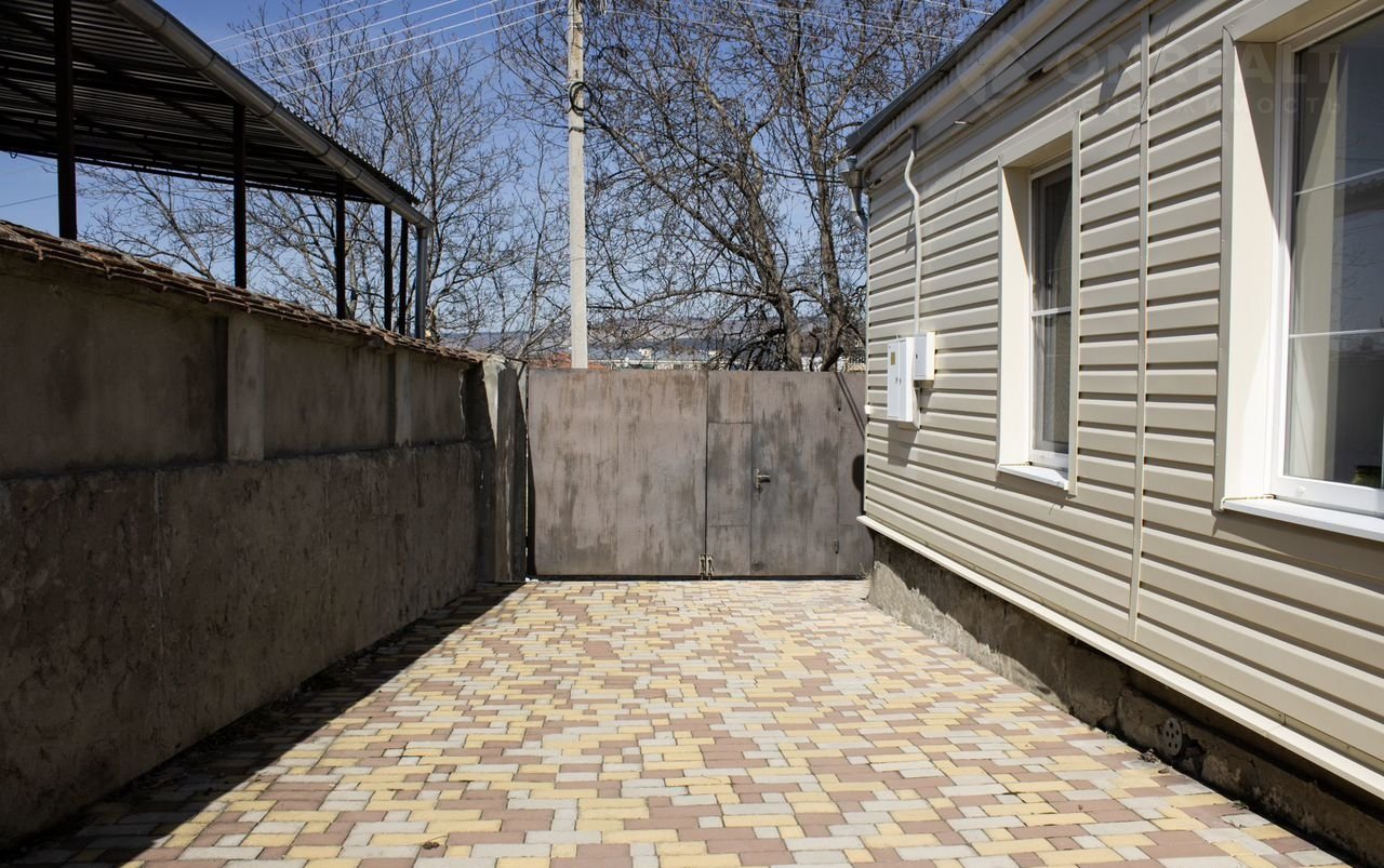 Двор выложен тротуарной плиткой.