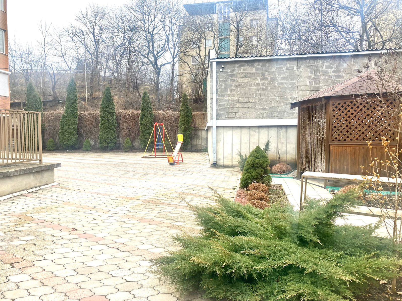 Территория дома полностью закрытая, консьерж, подземная парковка, также во дворе есть беседка и мангал для общего пользования.