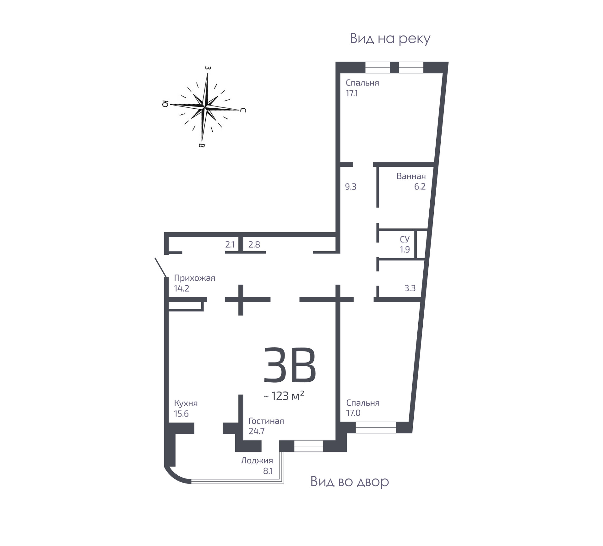 Высокие потолки в квартире (3,1 метра) увеличивают пространство и добавляют воздуха. В квартире есть спальня с большим окном, и спальня с двумя окнами. Можно организовать уютную мастер-спальню с персональной ванной и гардеробом. Из просторной гостиной и кухни есть выход на лоджию. Раздельные санузлы. Предусмотрены 2 гардеробные и подсобная.