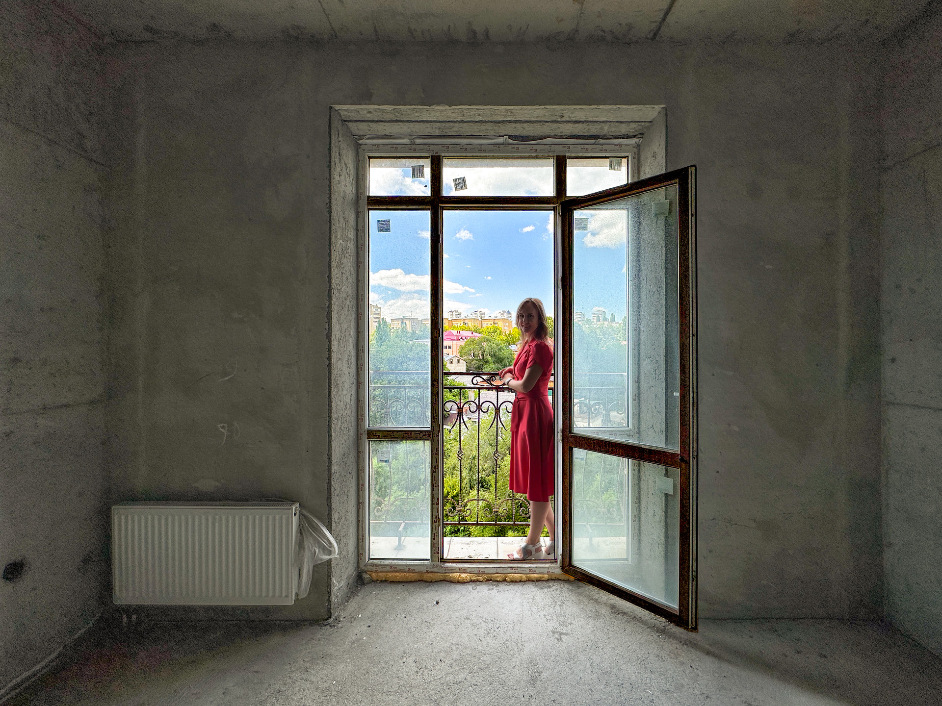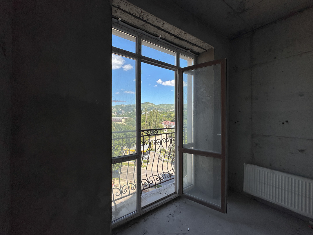 Окна квартиры выходят на восток (во двор и на проспект Победы), а также на запад (вид на собственную набережную реки Березовая и курортную часть Кисловодска).