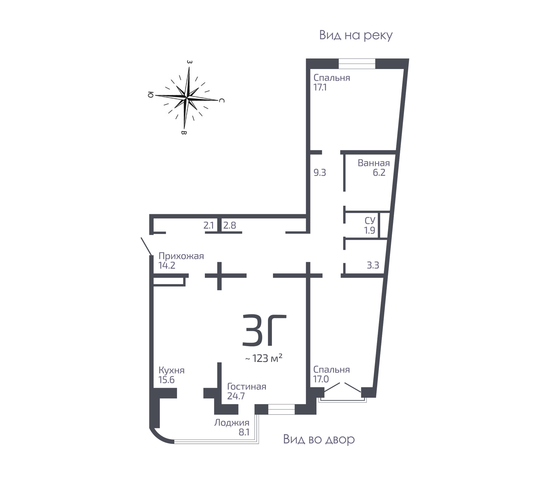 Высокие потолки в квартире (3,1 метра) увеличивают пространство и добавляют воздуха. В квартире есть спальня с большим окном, и спальня с панорамным окном и французским балконом. Можно организовать уютную мастер-спальню с персональной ванной и гардеробом. Из просторной гостиной и кухни есть выход на лоджию. Раздельные санузлы. Предусмотрены 2 гардеробные и подсобная.
