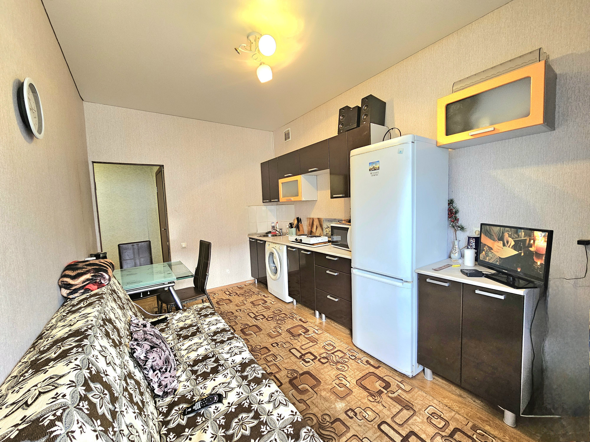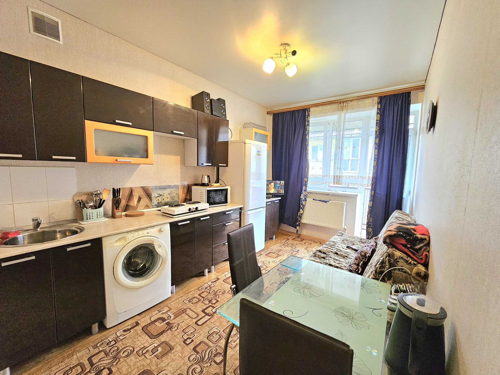 Косметический ремонт, кухонный гарнитур, встроенная бытовая техника, частично корпусная мебель.