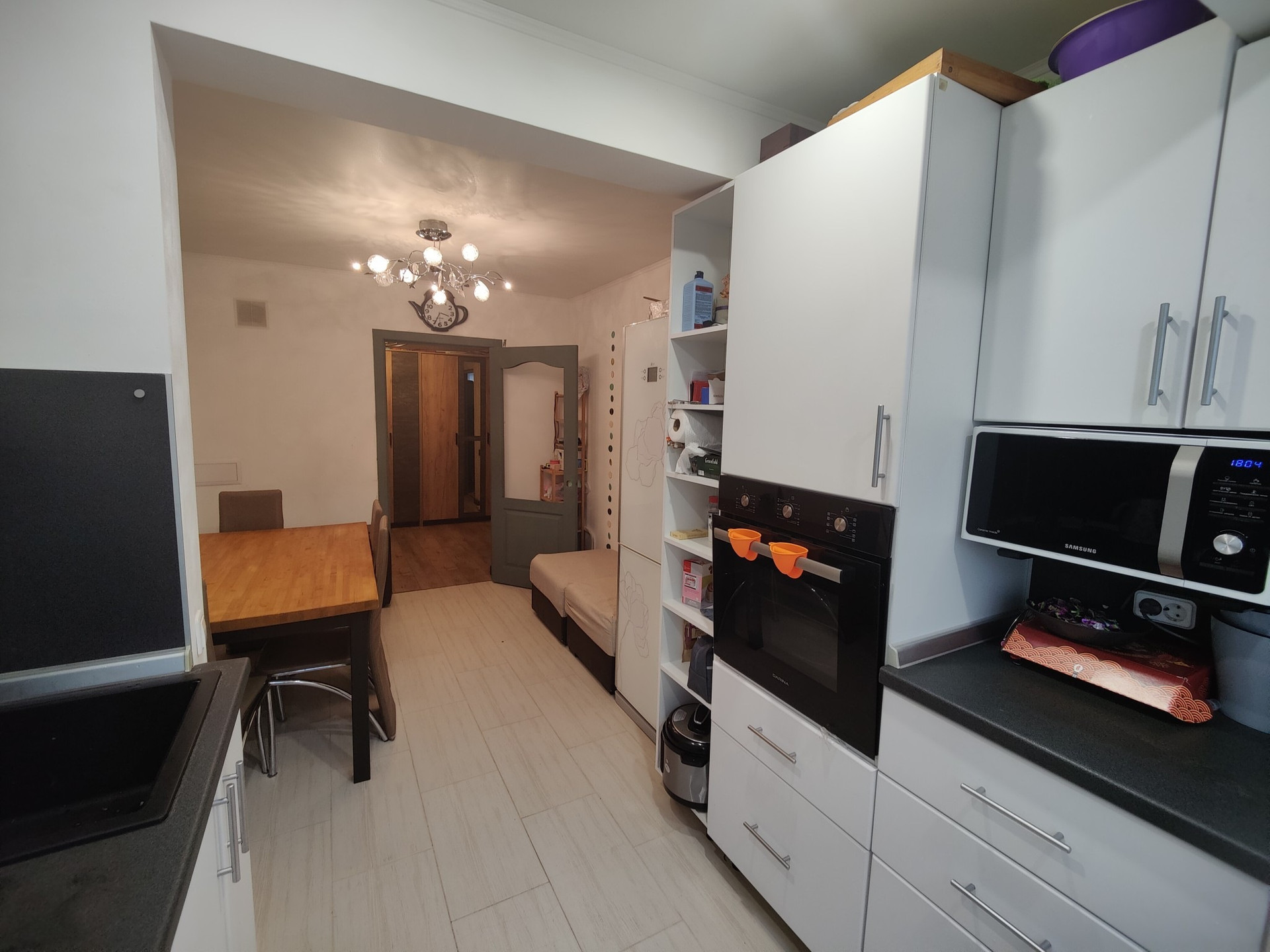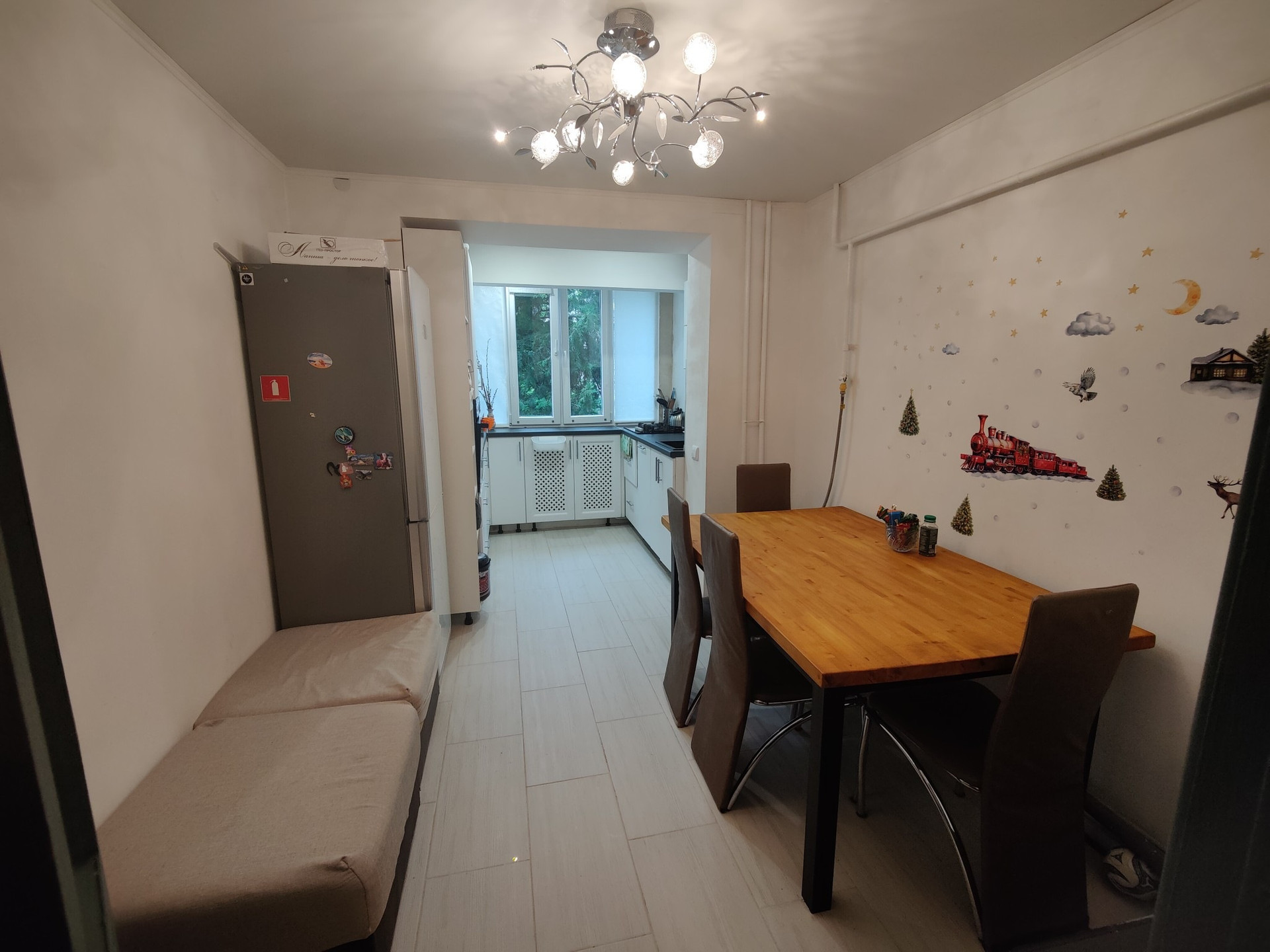 Кухня с обеденной зоной, увеличена за счёт балкона (все узаконено).