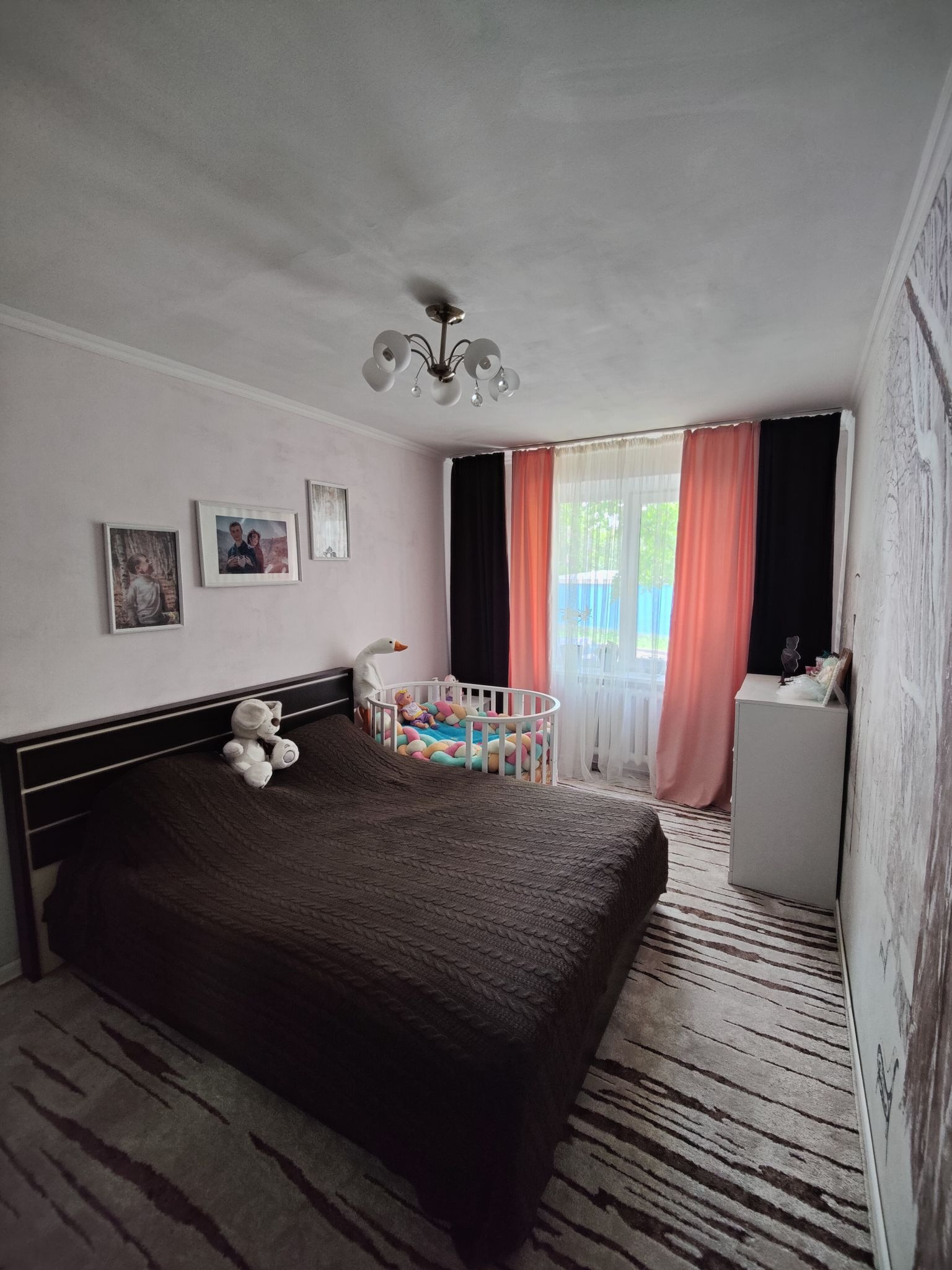 1 спальня (12.7кв.) - окна выходят на церковь, на одной из стен нарисован зимний пейзаж.