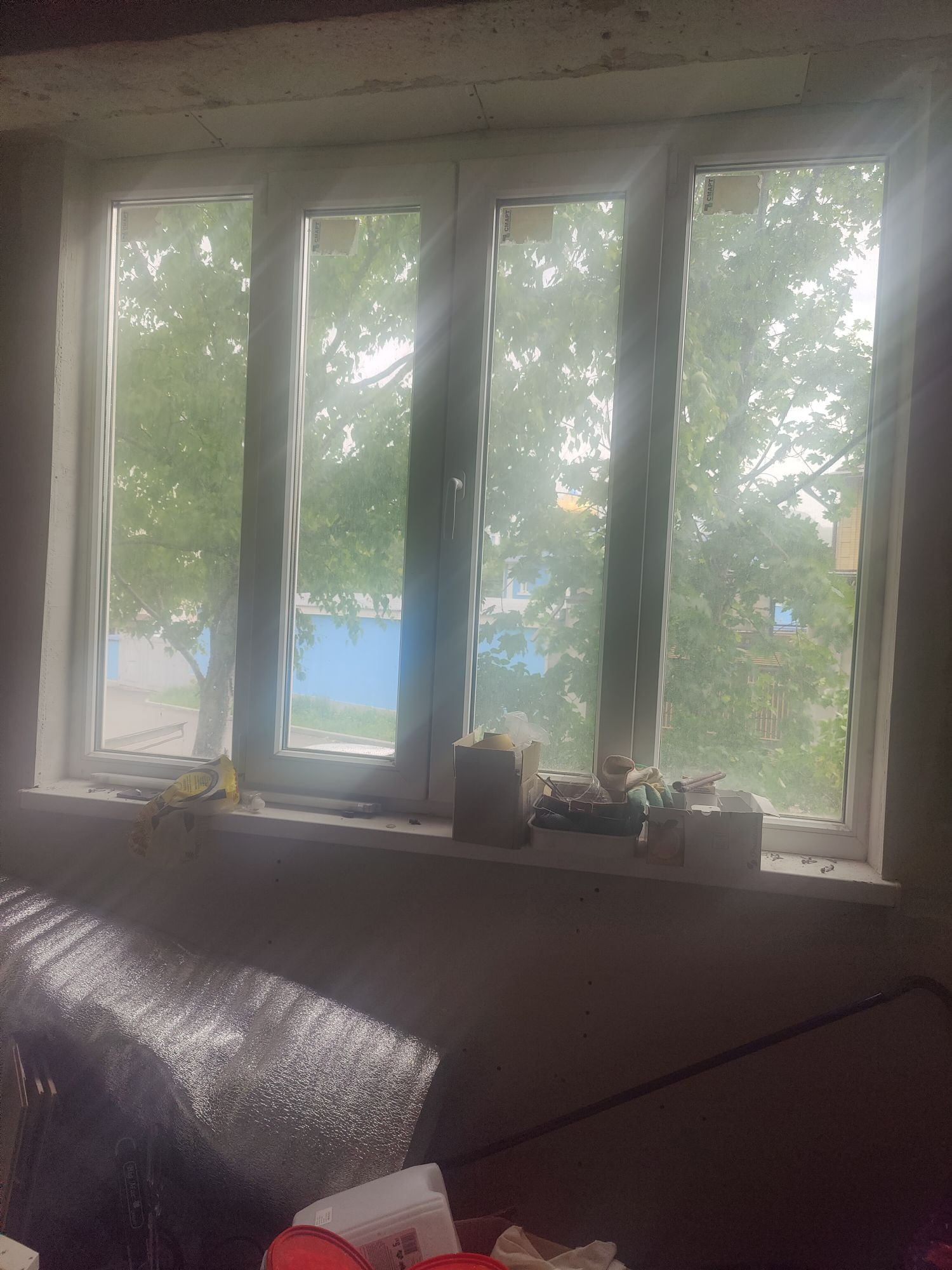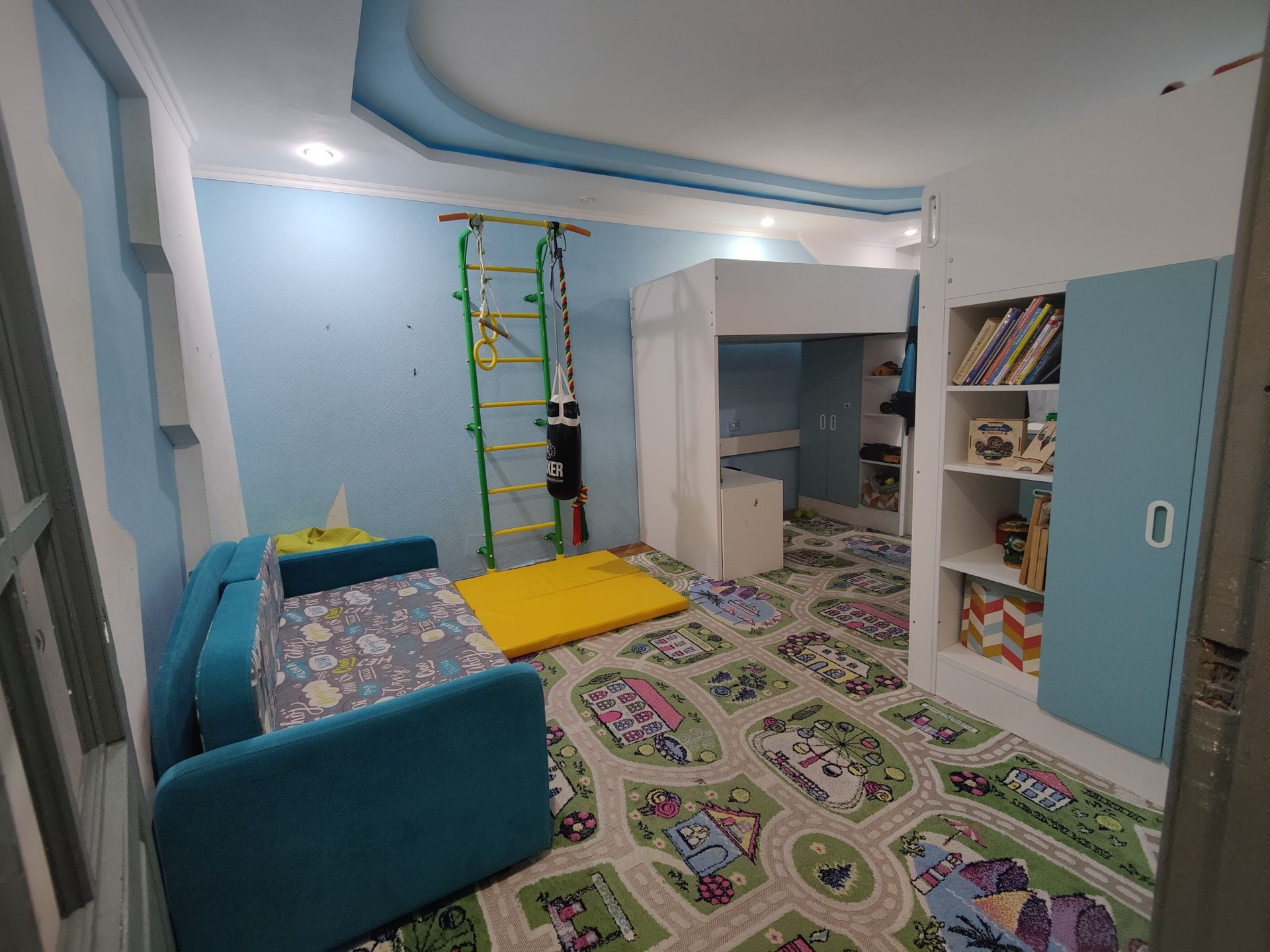 3 спальня (17.8) - детская в голубых и белых тонах, окна выходят во двор с детской площадкой. У нас это спальня для двух мальчиков (комната требует ремонта).