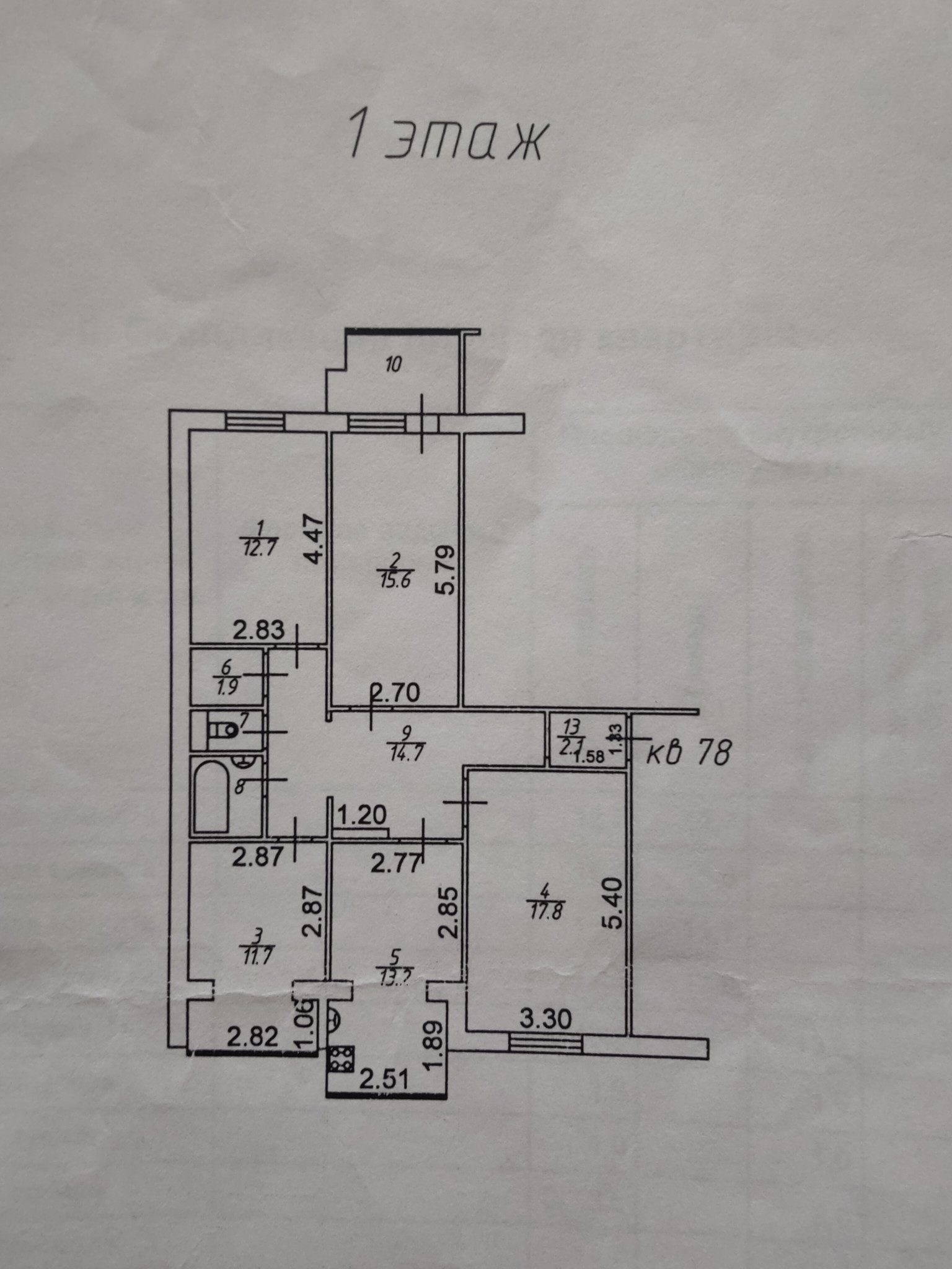 3 спальни, кухня с обеденной зоной, зал, кладовка, раздельный сан.узел и большой коридор.