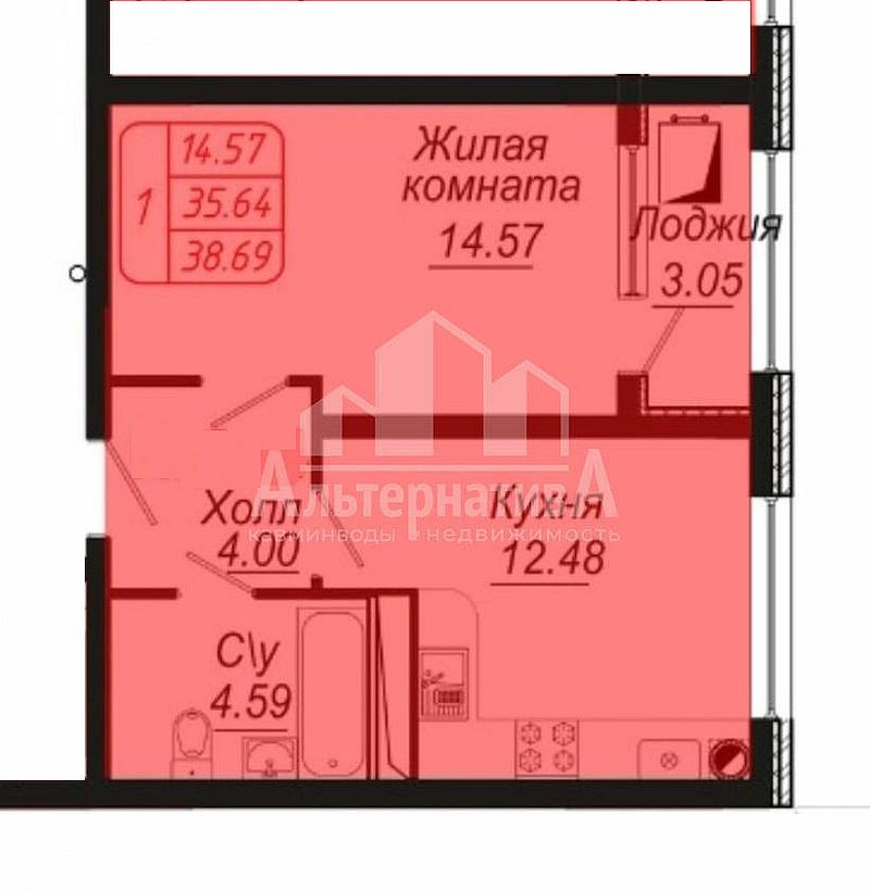 Общая площадь 35.5 м2