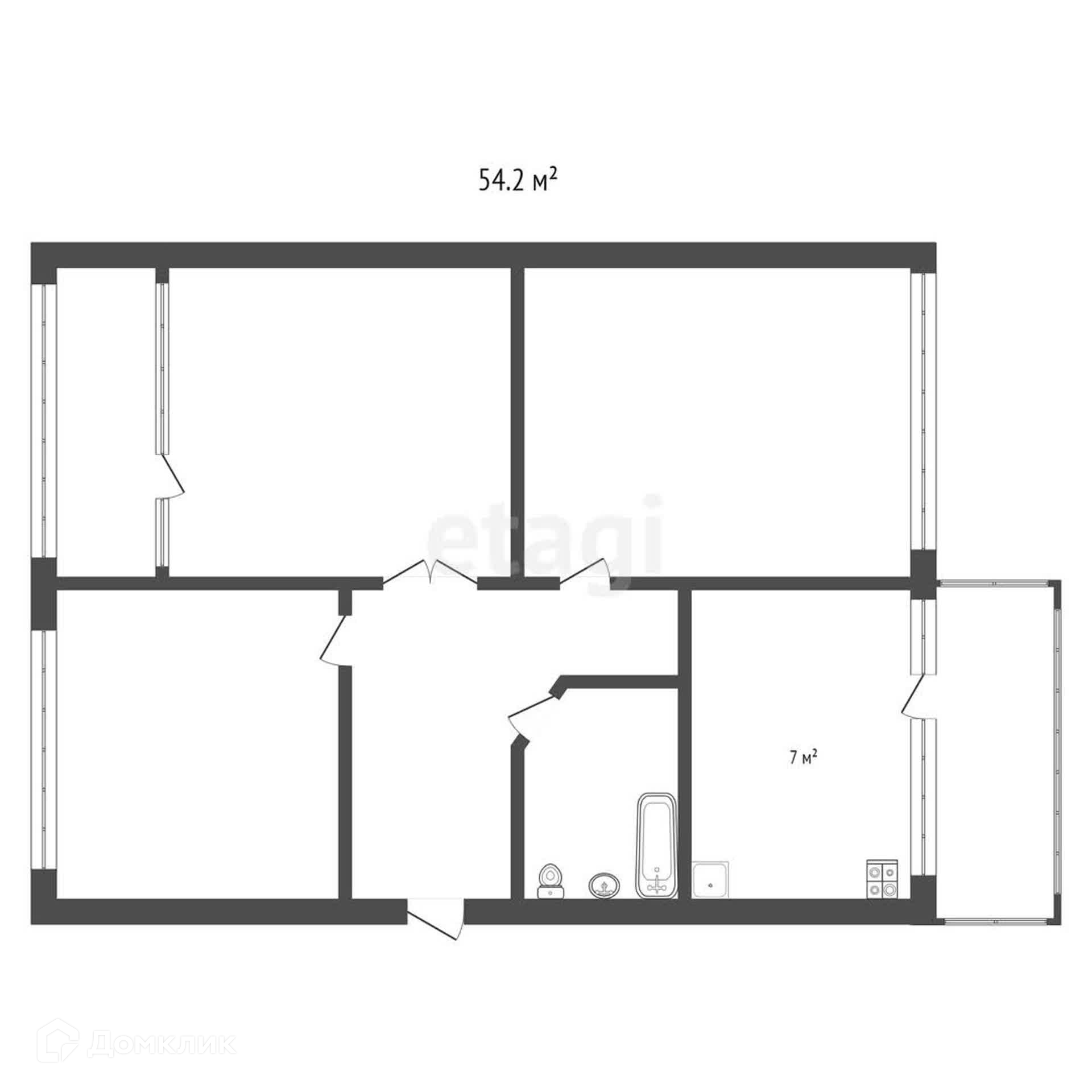 Общая площадь 54.2 м2