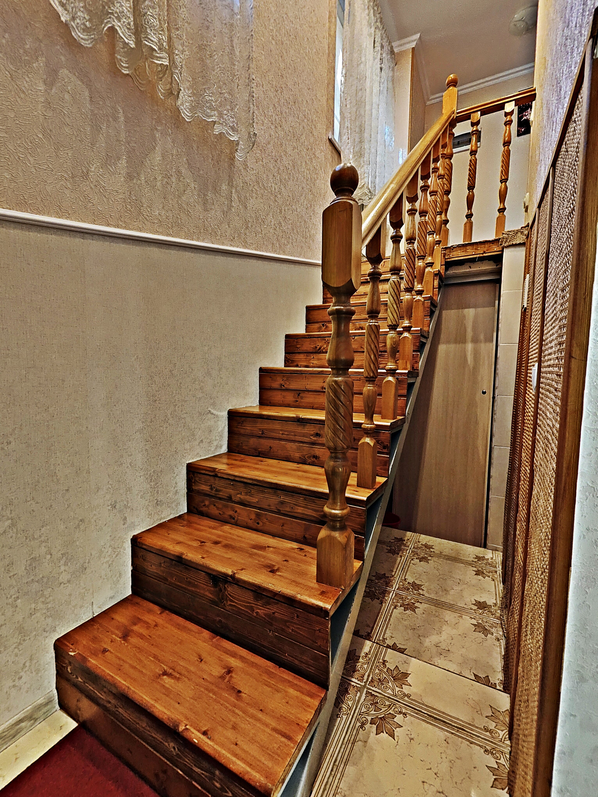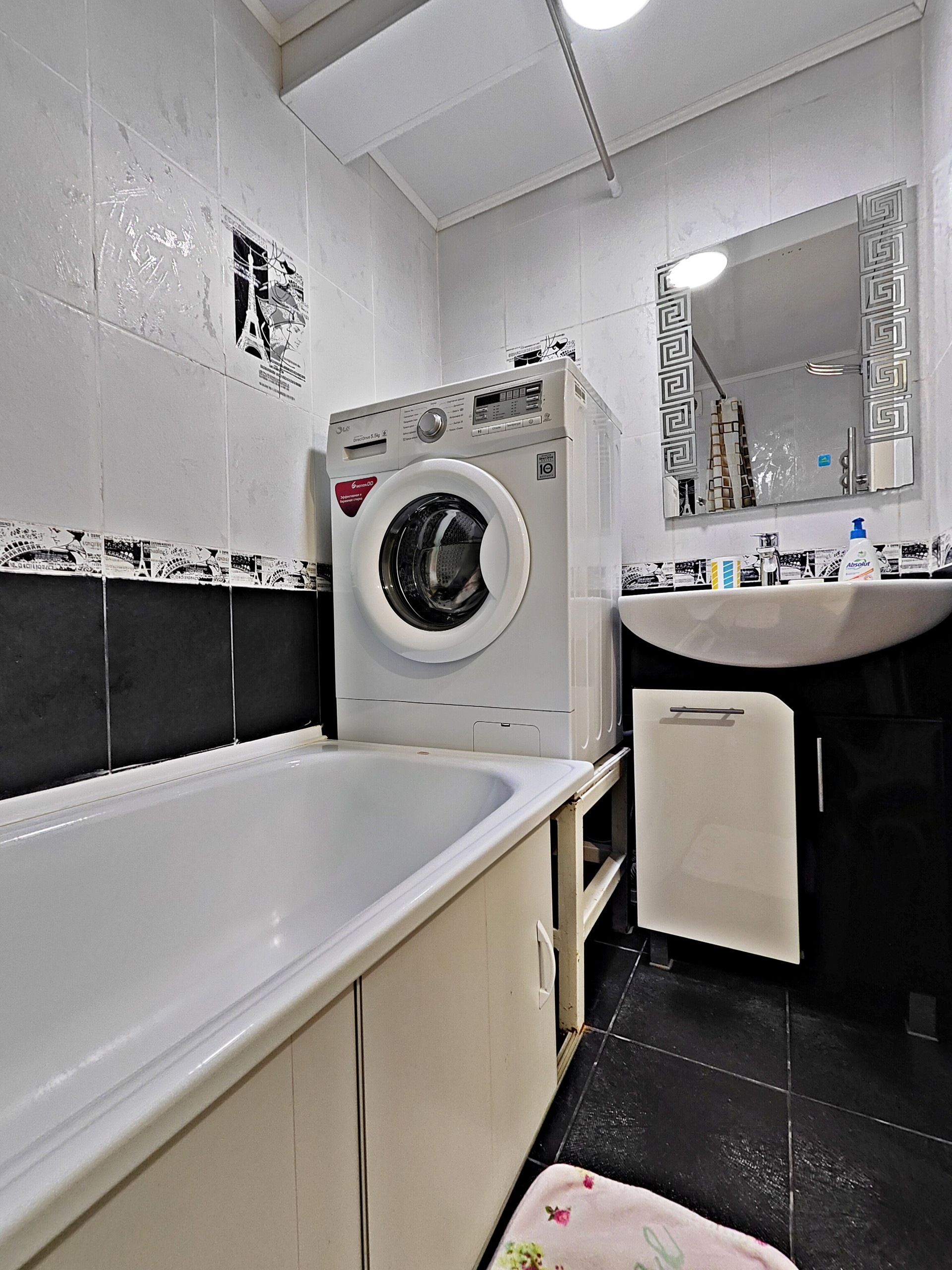 • На первом этаже прихожая, кухня, обеденная зона, ванная комната. На кухне: газовая плита с духовым шкафом, электрический чайник, холодильник, микроволновая печь, необходимая посуда (тарелки, кастрюли, сковорода, кружки, стаканы, вилки, ложки), соль и др. • Санузел раздельный: ванна, мыло. Стиральная машина. • Фен, сушилка для белья.