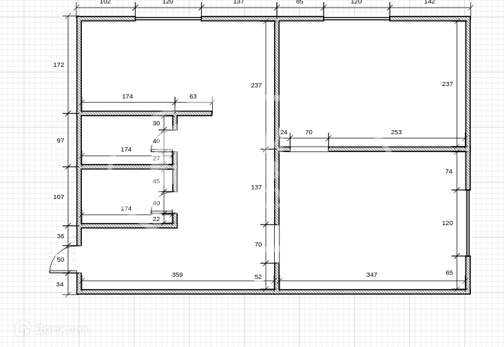 Общая площадь 44 м2