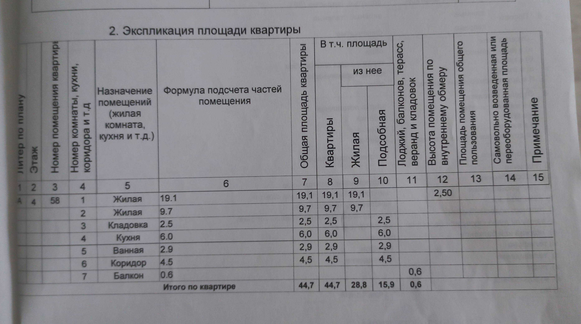 Общая площадь 44.7 м2