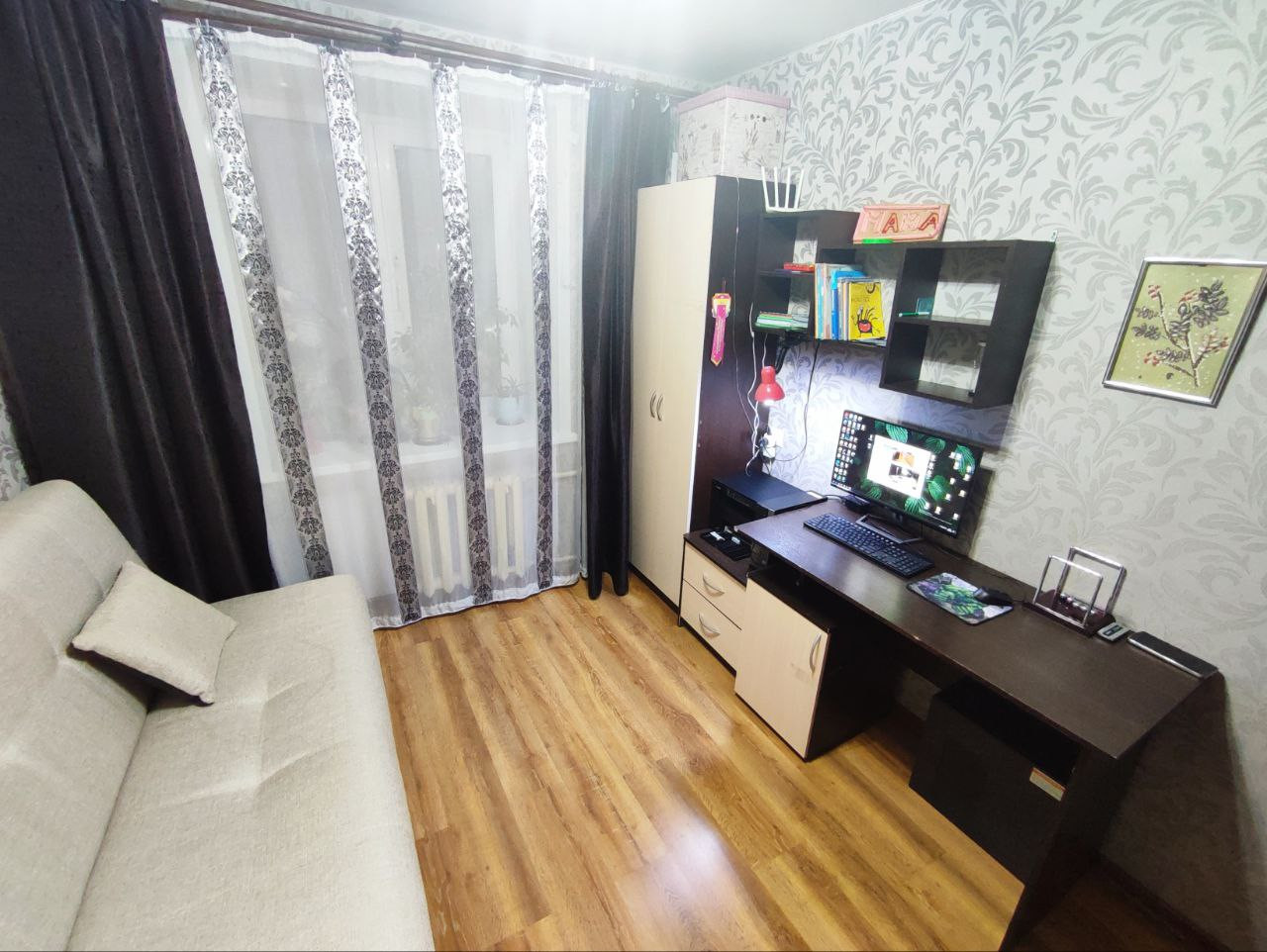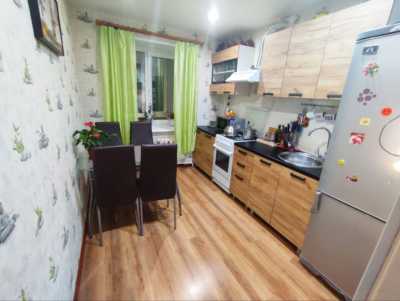 + Везде установлены пластиковые окна, натяжные потолки и ламинат без порогов и перепадов по комнатам