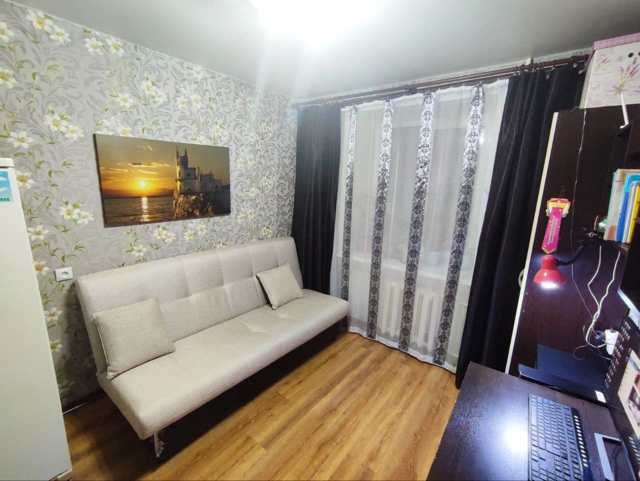 +Так же к плюсу этой квартиры можно отнести 4 этаж, из окон комнат вы будете наблюдать красивый закат на горизонте лесного массива, вместо соседских окон серых хрущёвок
